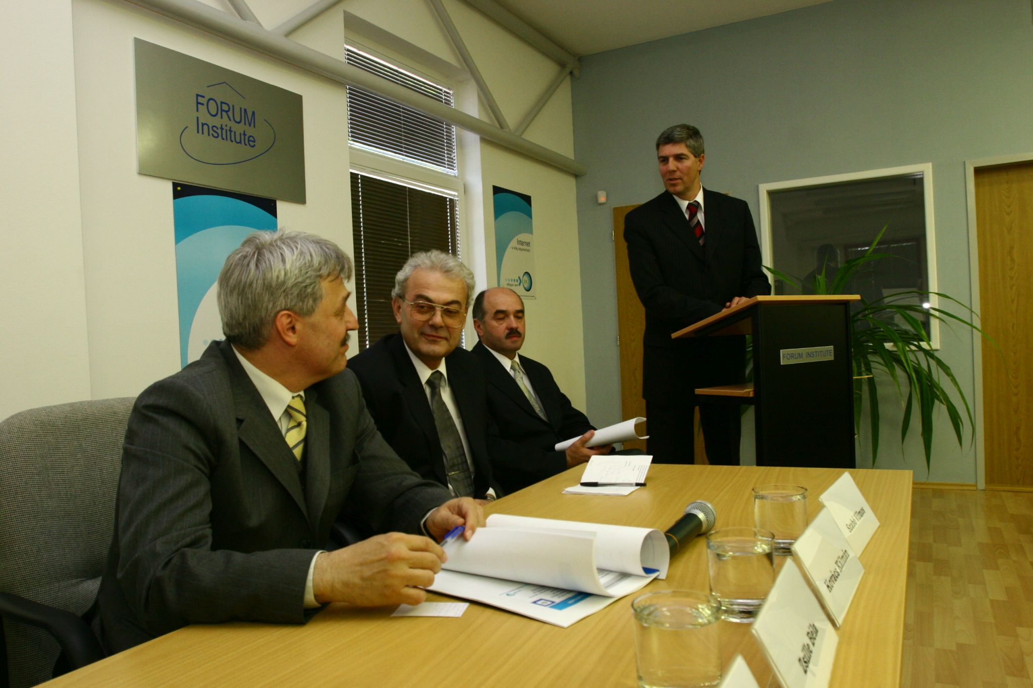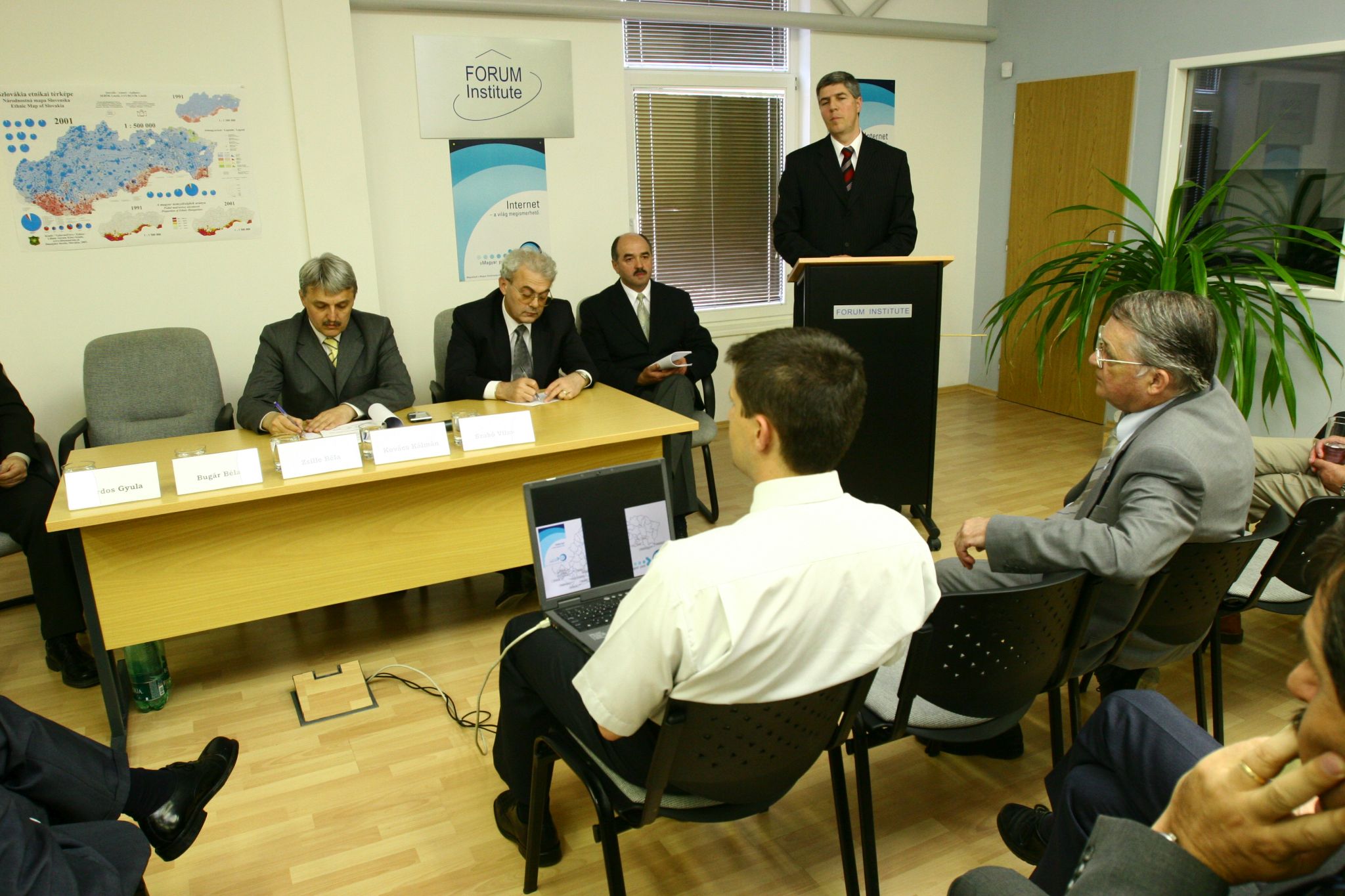 EMagyar pontok Szlovákiában – konferencia a Fórum Intézetben. A képen Kovács Kálmán és Bugár Béla.