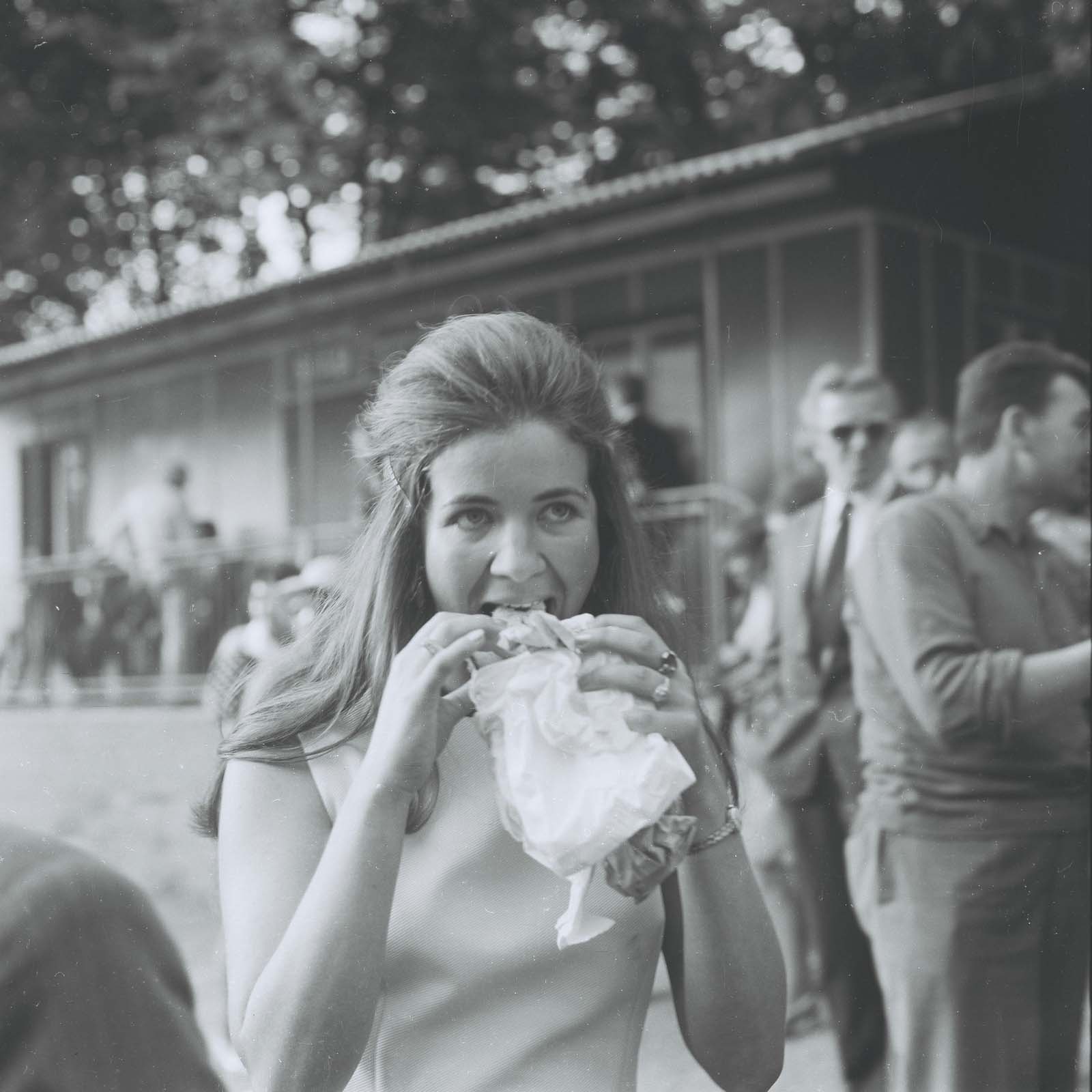 Falatozó hölgy. (XVII. Országos Dal- és Táncünnepély)