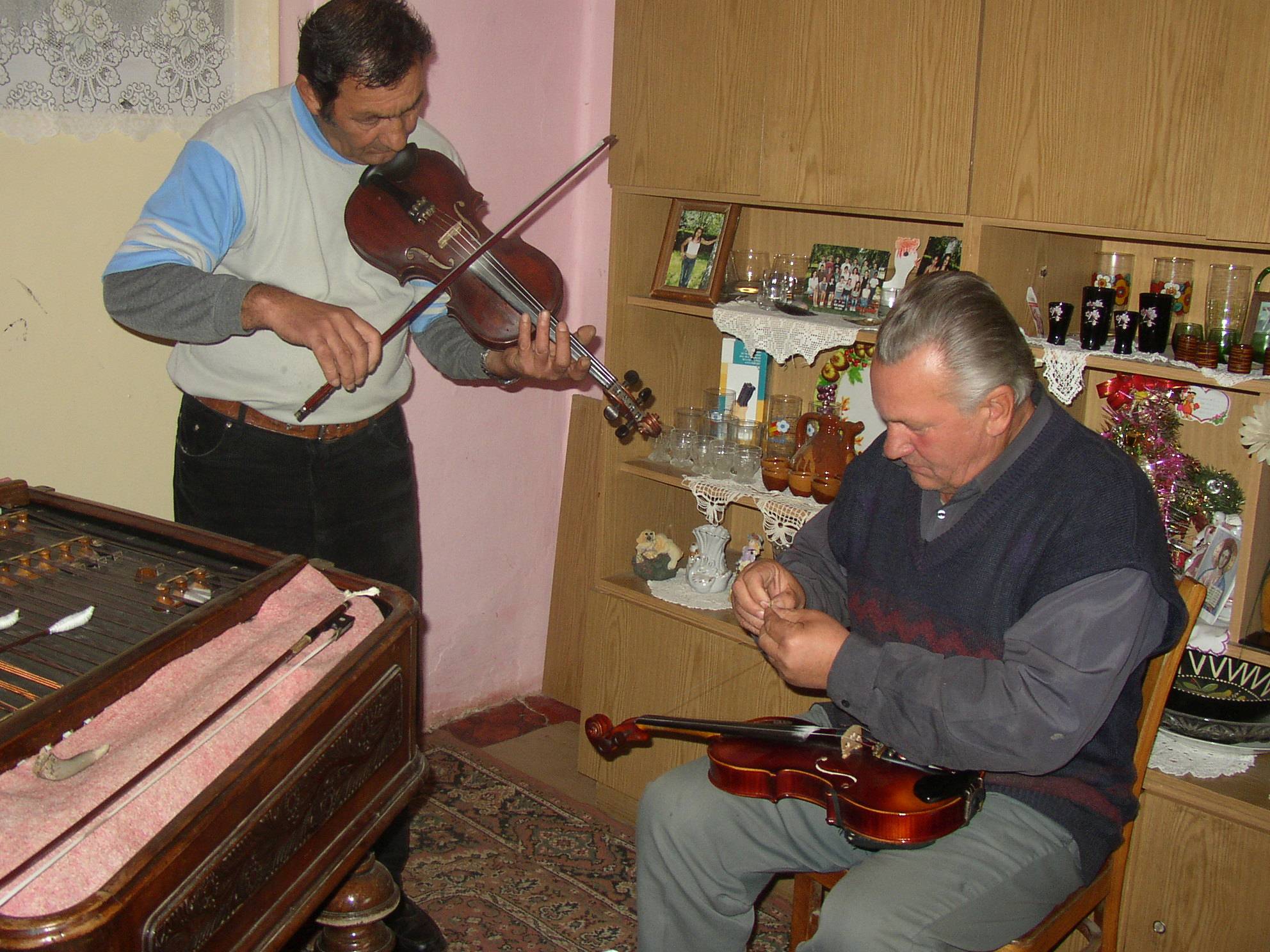 Ficzu Béla „Bési” és Balogh József „Furulyás” hangolnak.