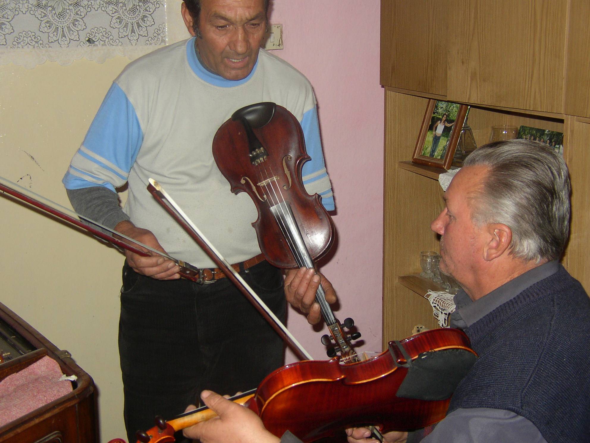 Ficzu Béla „Bési” és Balogh József „Furulyás” hangolnak.