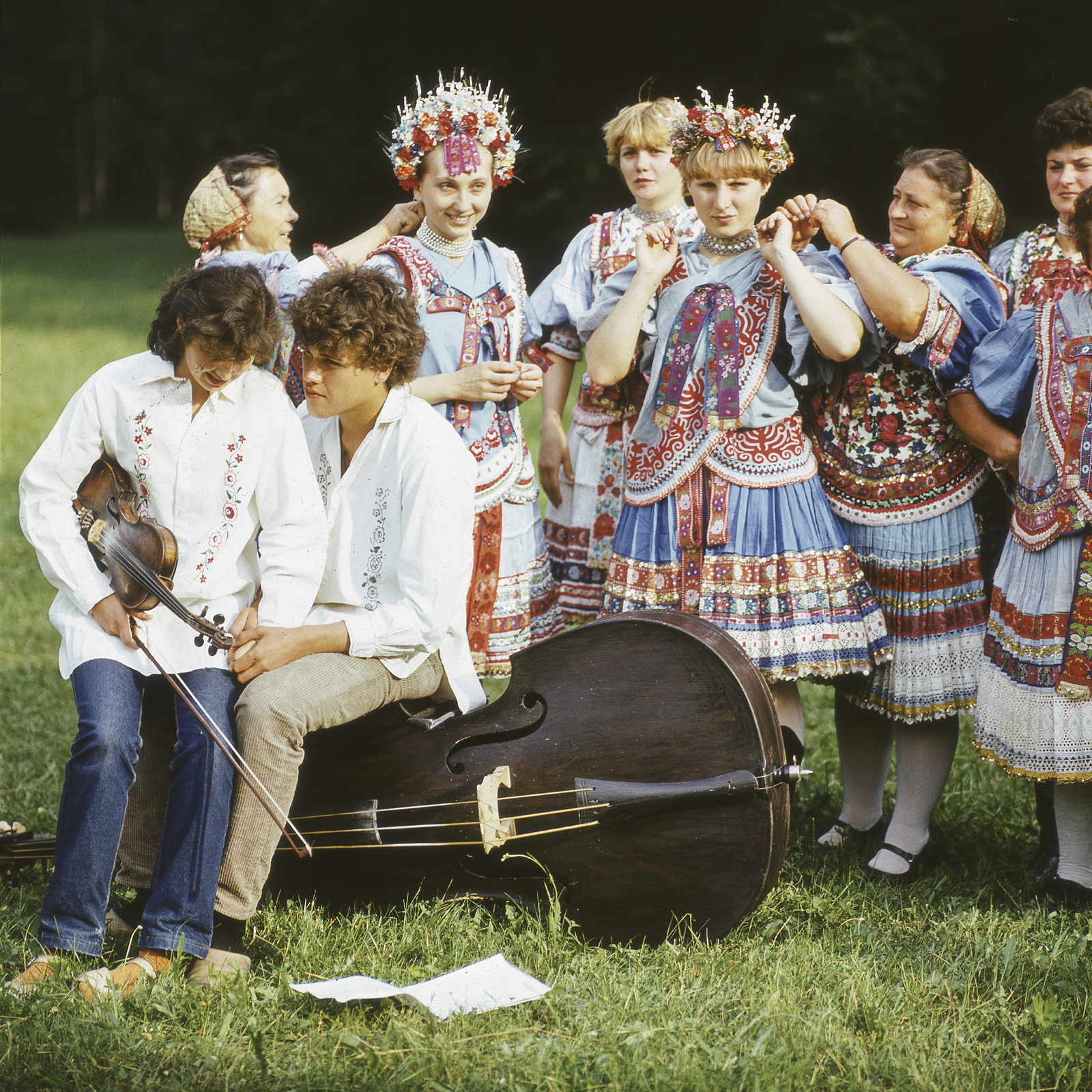 Harminchatodik zselízi országos népművészeti fesztivál. A martosi hagyományőrző csoport. A bőgőn Farkas Lívia és Róbert
