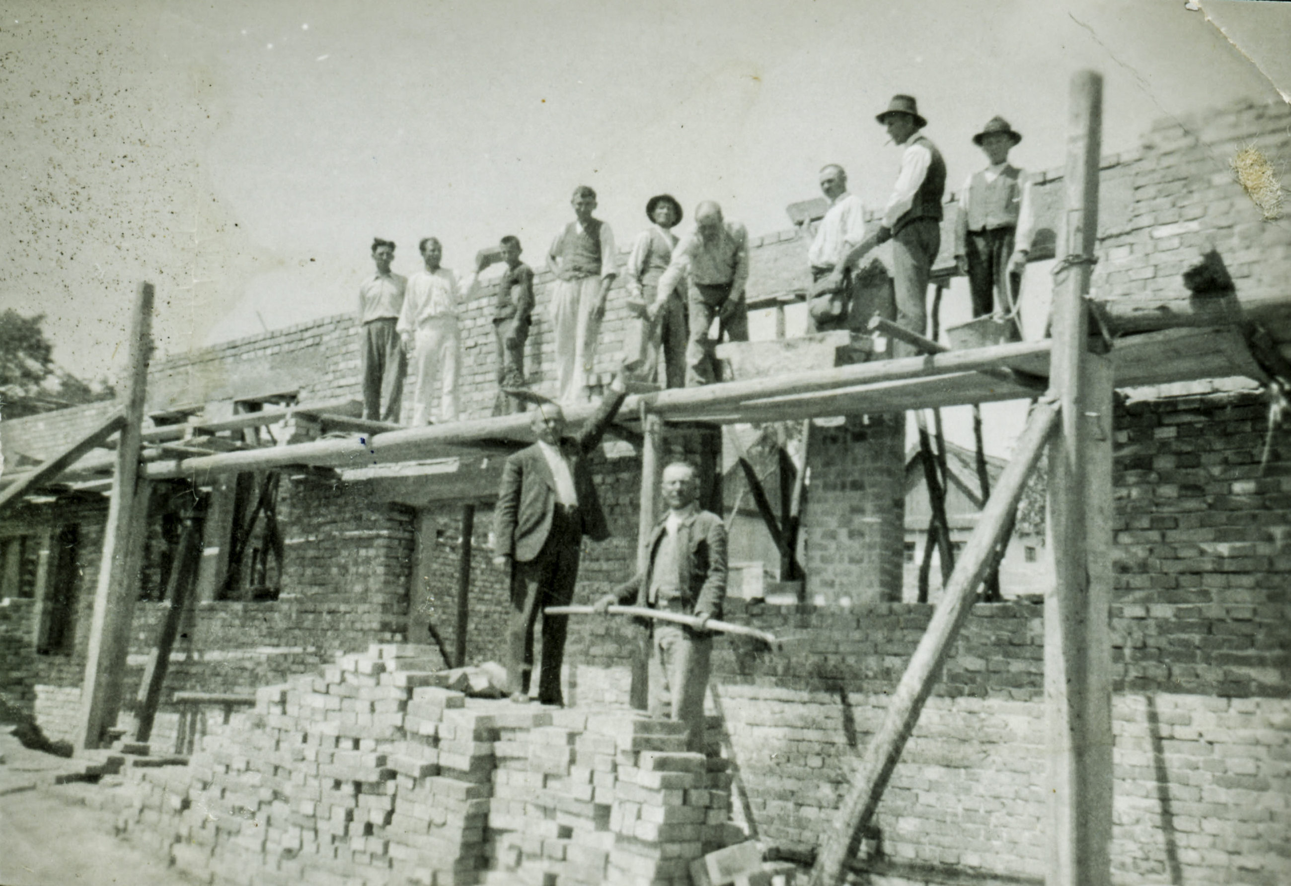 Jelképes téglaadogatás.