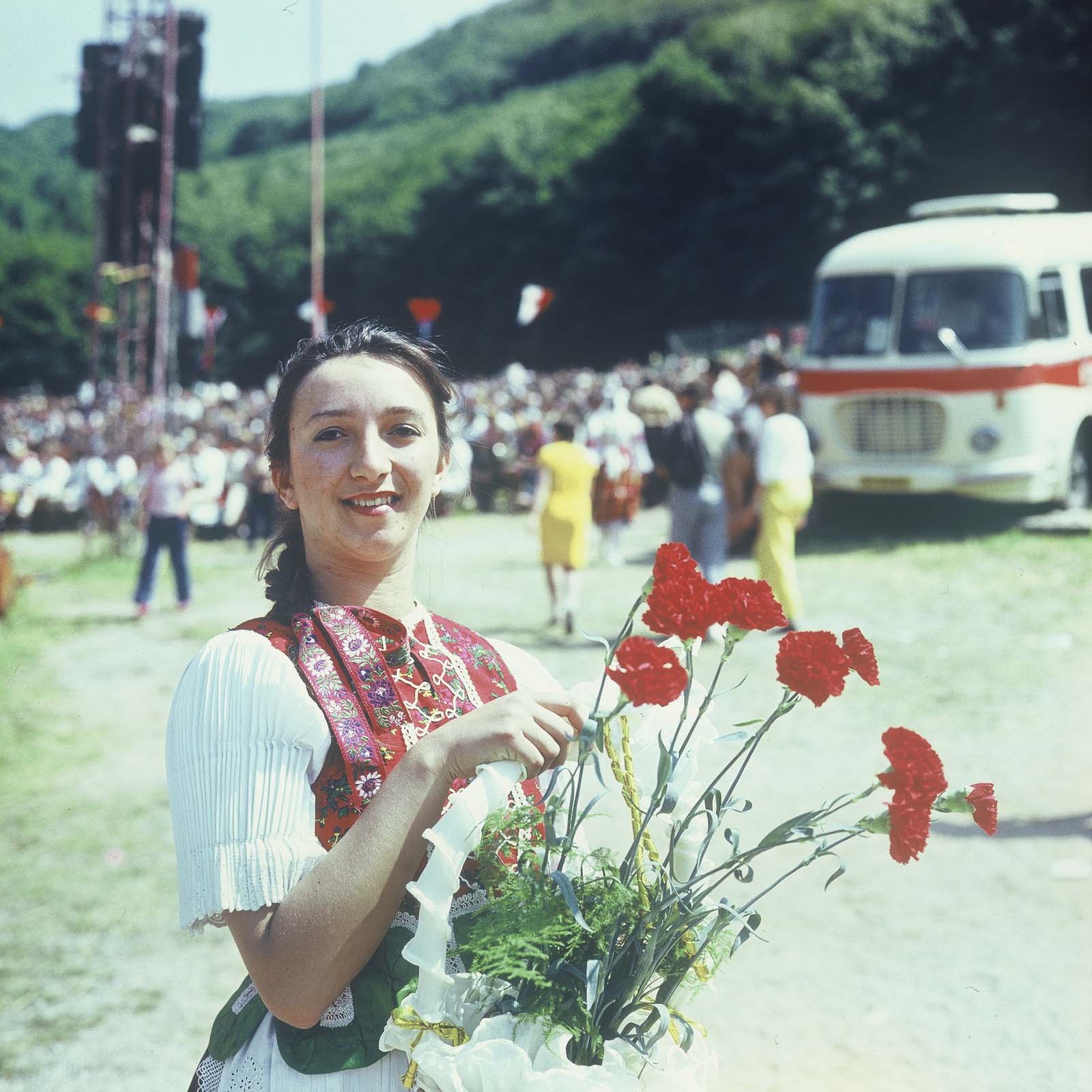 Kaprálik Zsuzsa a Csemadok KB néprajzosa, a kiállítás szerezője. (XXIX. Országos Kulturális Ünnepély)