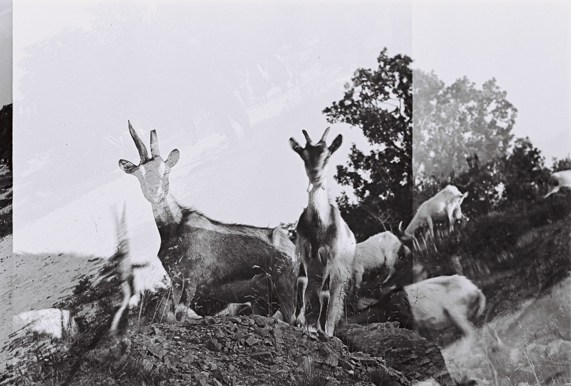 Kecskék. Dupla expozíció. (Arany Adalbert László fotói tájakról, falvakról és emberekről az 1950-es évekből. Lipcsey Gyula hagyatéka)