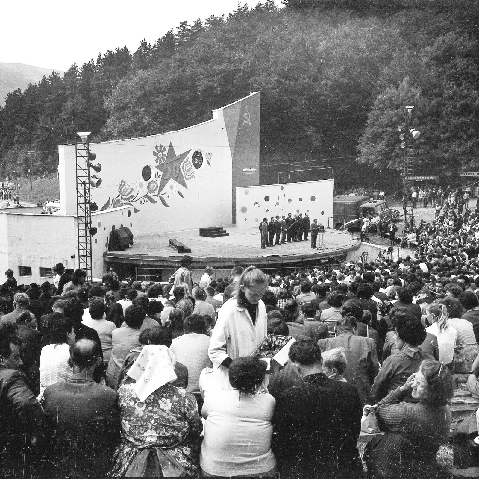 Közönség. (a háttérben a politikai küldöttség a színpadon) (XVI. Országos Dal- ás Táncünnepély)