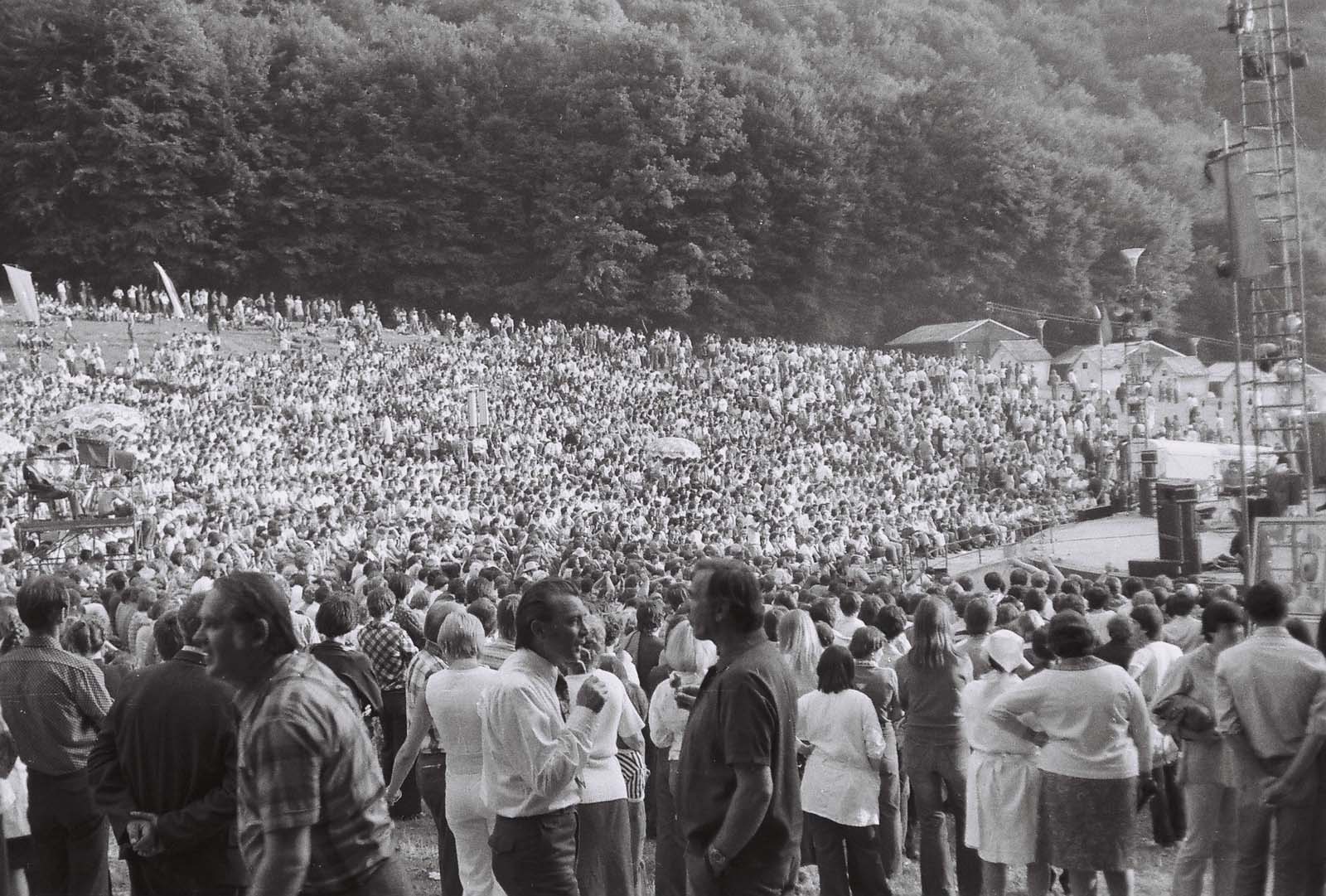 Közönség (elől középen áll Kvocsák József az Ifjú Szivek Táncegyüttes koreográfusa) (XXIV. Országos Kulturális Ünnepély)