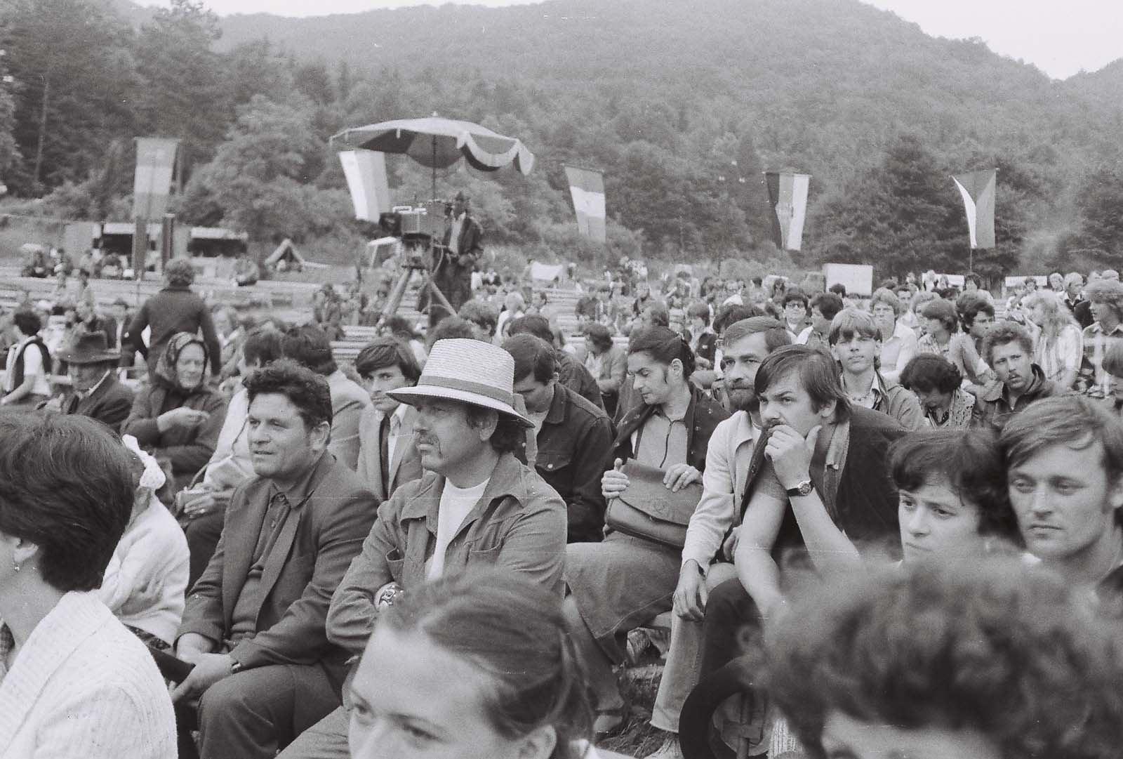 Közönség. (jobbról szalmakalapban 7. Takács János, és Molnár Tibor – a Palóc Táncegyüttes vezetője, Fülekpüspöki) (XXIV. Országos Kulturális Ünnepély)