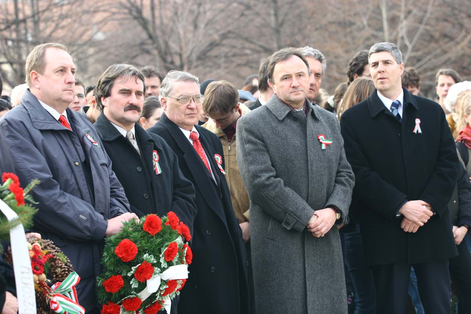 Március 15-ei megemlékezés a pozsonyi Medikus kertben, a Petőfi szobornál (a képen: Bárdos Gyula, Győrffy Csaba, Csáky Pál és Bugár Béla)