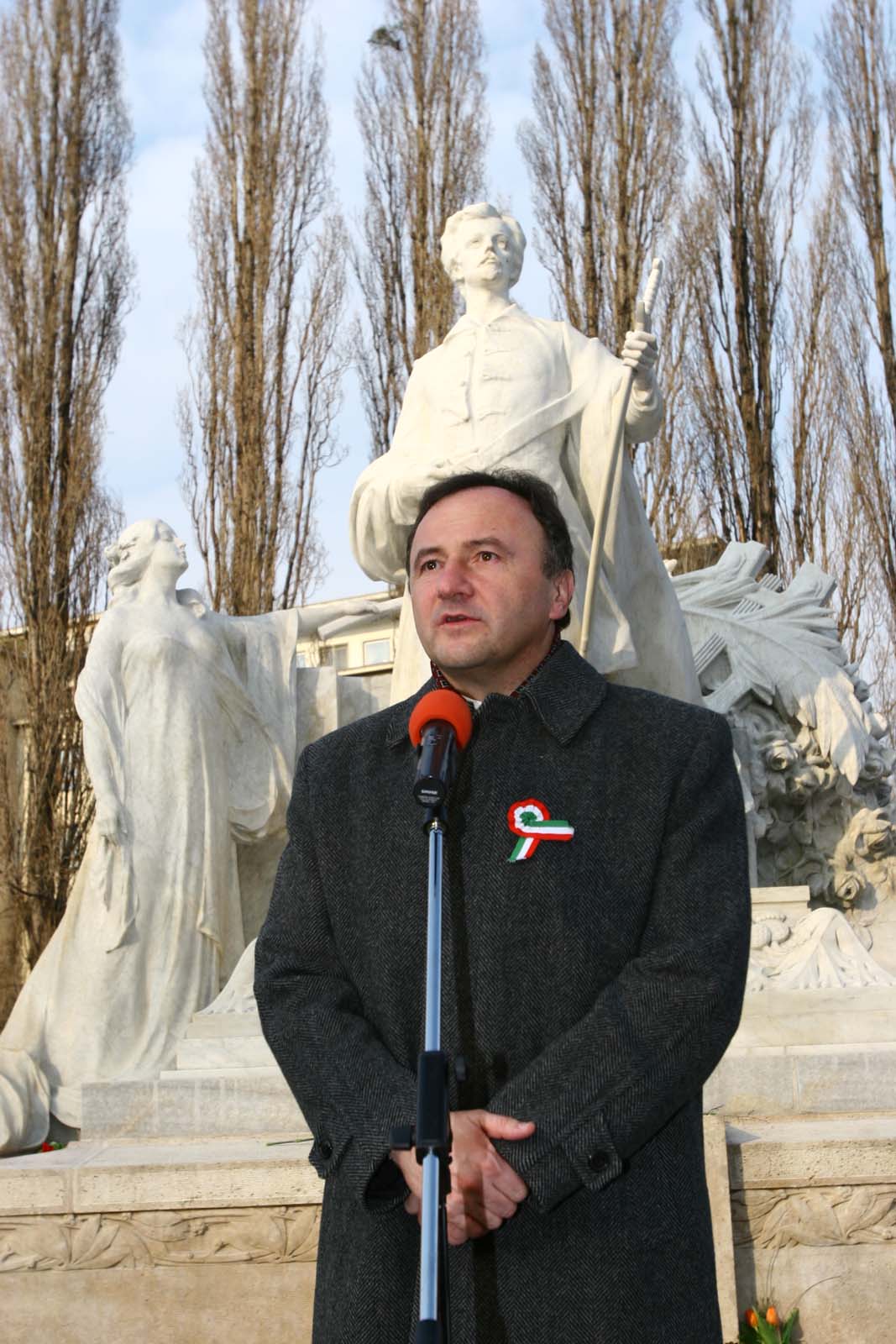 Március 15-ei megemlékezés a pozsonyi Medikus kertben, a Petőfi szobornál (a képen: Csáky Pál)