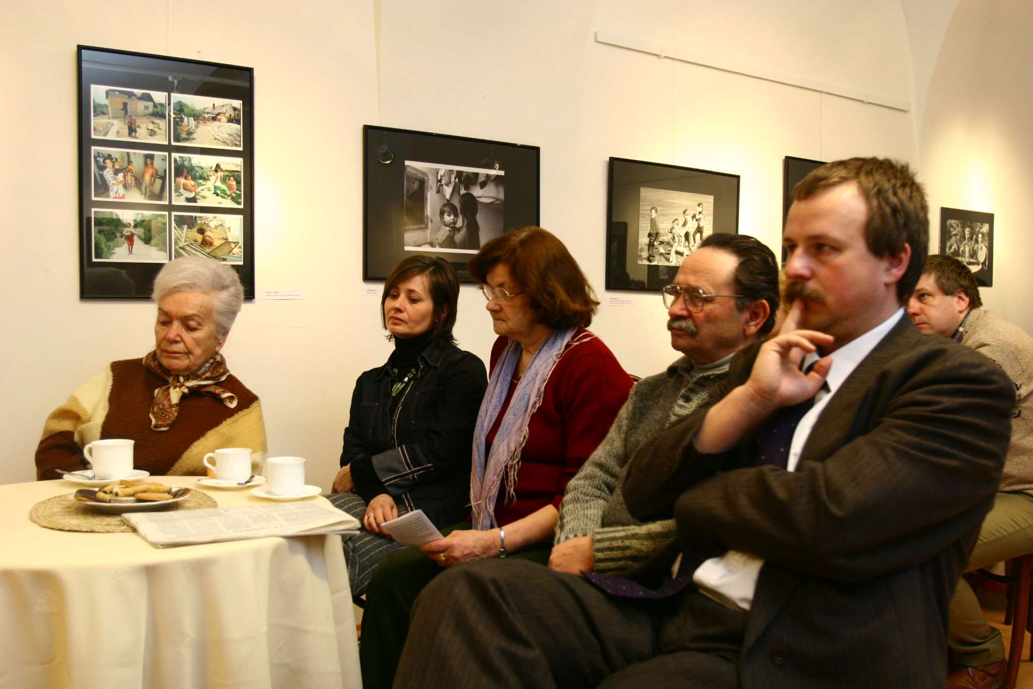Mayer Judit a Múzeumi Szalon vendége a Bramer-kúriában. A képen jobbról a második Takács András néptáncgyűjtő, koreográfus.