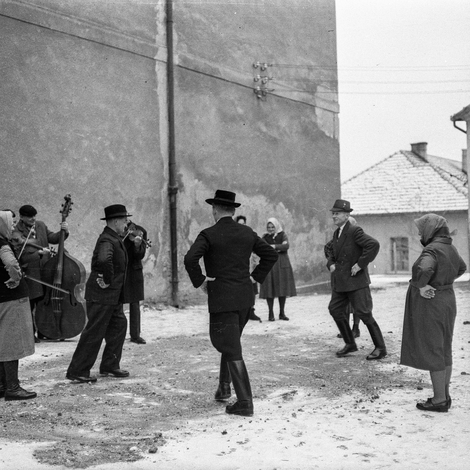Megrendezett filmfelvétel a Csemadok által rendezett néptáncgyűjtő tanfolyam hallgatói részére. (Kettes és friss, Előadók: Balogh Gyula, Borbély István “Pistyúr”, Borbély István “Slokota”, Brenkus Veronika, Balogh Teréz, Benkő Ilona. A helyi cigányzenekar tagjai: Cirók Aladár – prímás, Lakatos József – nagybőgő, Farkas István – kontra.)
