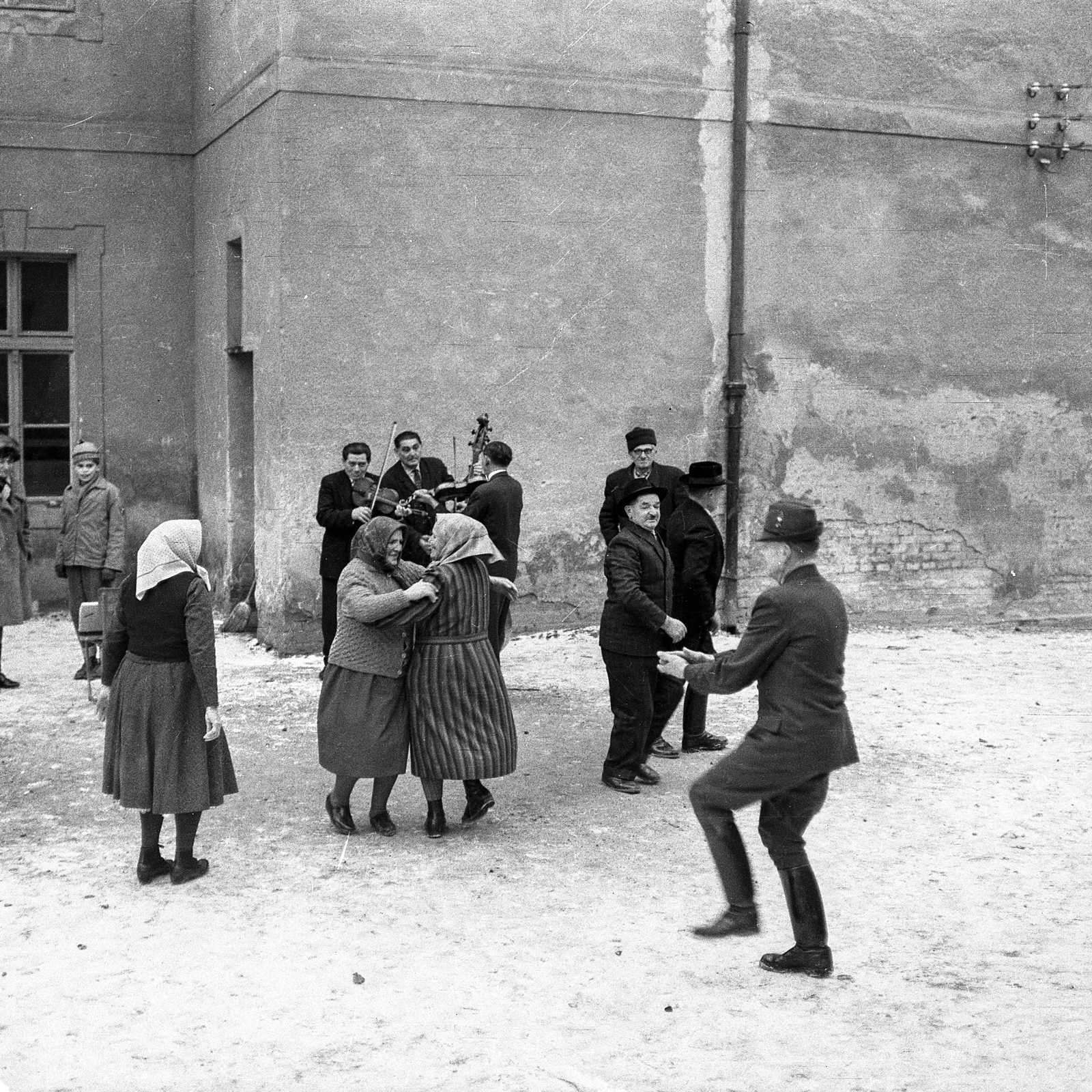 Megrendezett filmfelvétel a Csemadok által rendezett néptáncgyűjtő tanfolyam hallgatói részére. (Kettes és friss, Előadók: Balogh Gyula, Borbély István “Pistyúr”, Brenkus Veronika, Balogh Teréz. A helyi cigányzenekar tagjai: Cirók Aladár – prímás, Lakatos József – nagybőgő, Farkas István – kontra. A hangfelvevőnél Éri Péter és Méry Margit)