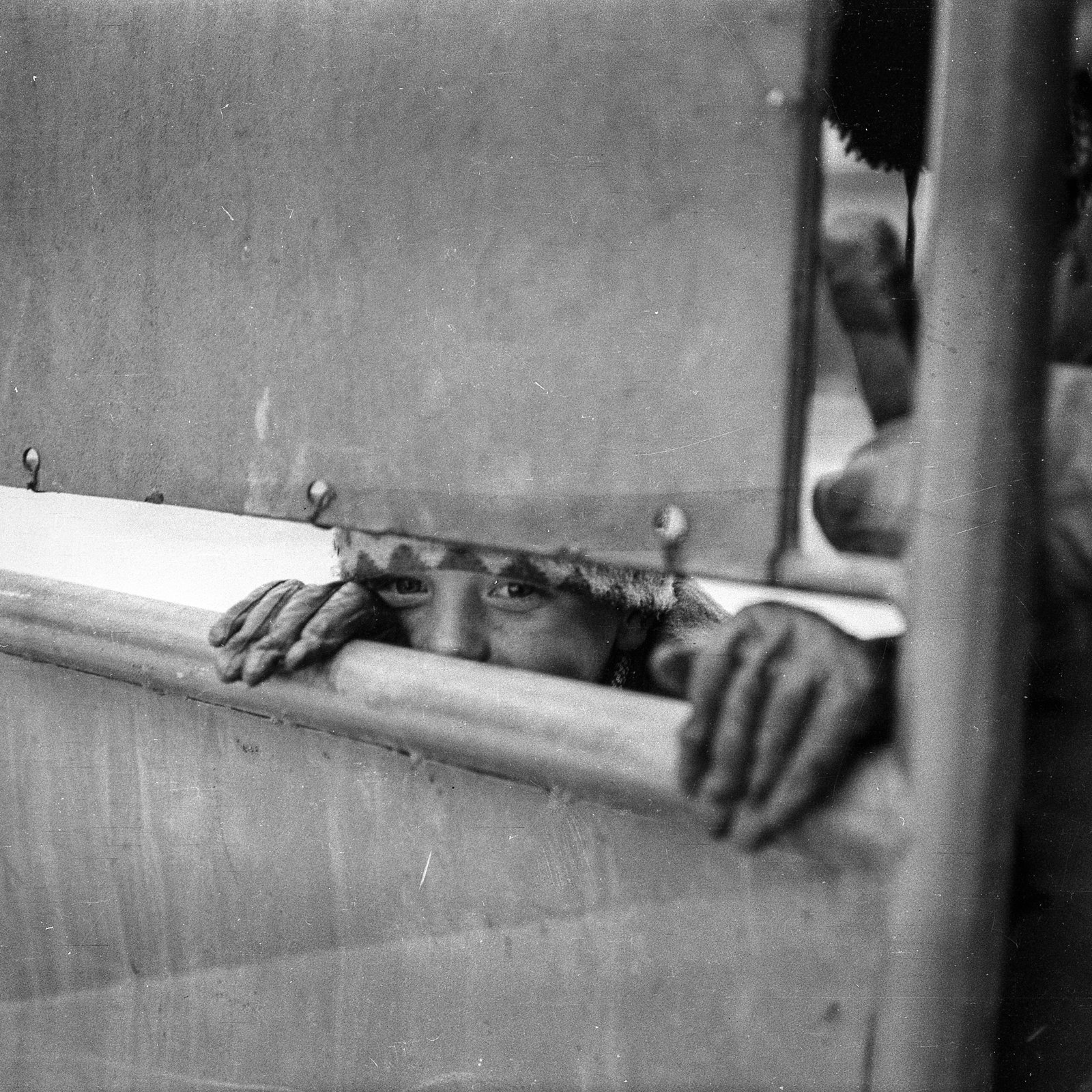 Megrendezett filmfelvétel a Csemadok által rendezett néptáncgyűjtő tanfolyam hallgatói részére. (kukucskáló kisfiú)
