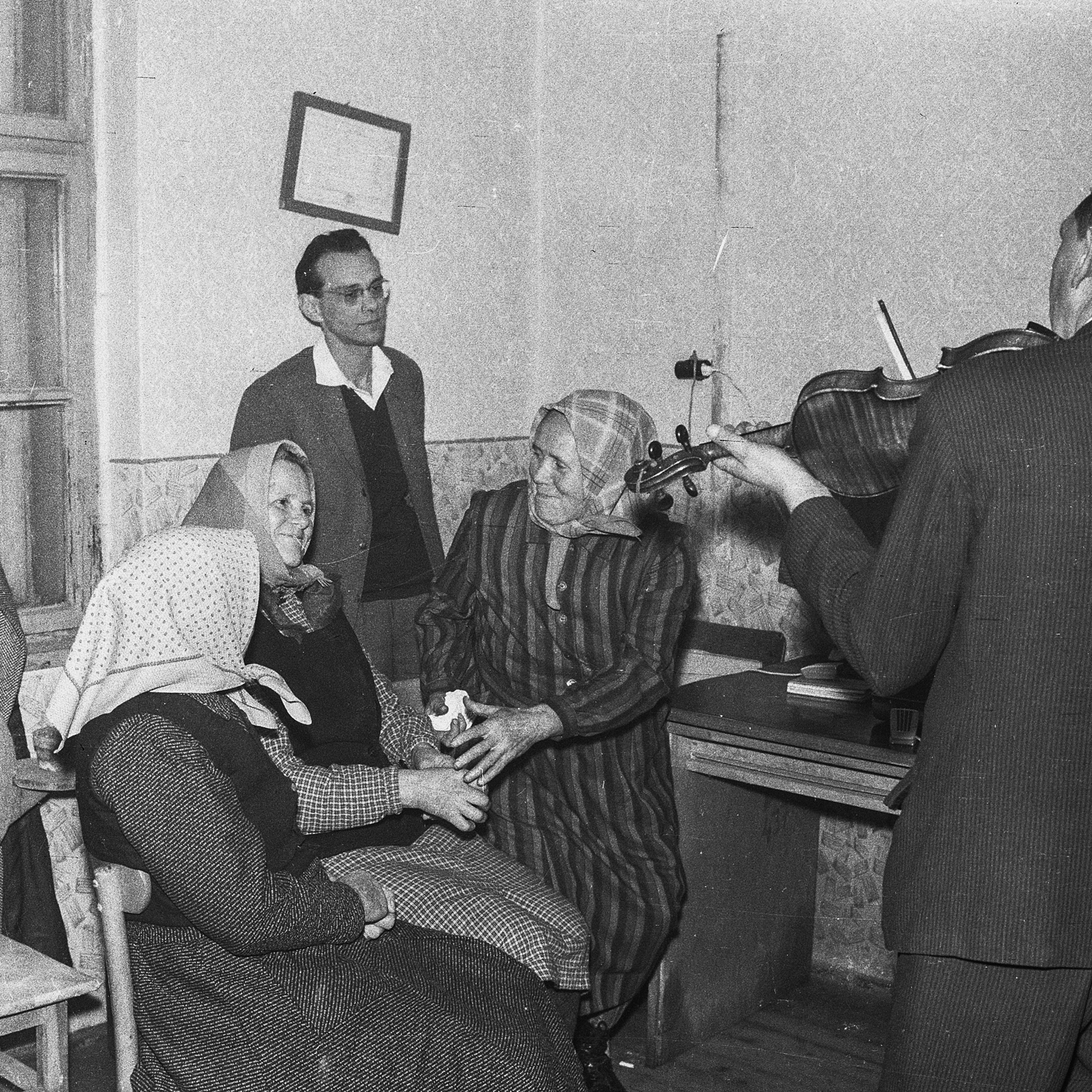 Megrendezett filmfelvétel a Csemadok által rendezett néptáncgyűjtő tanfolyam hallgatói részére. (Martin György gyűjtés közben)