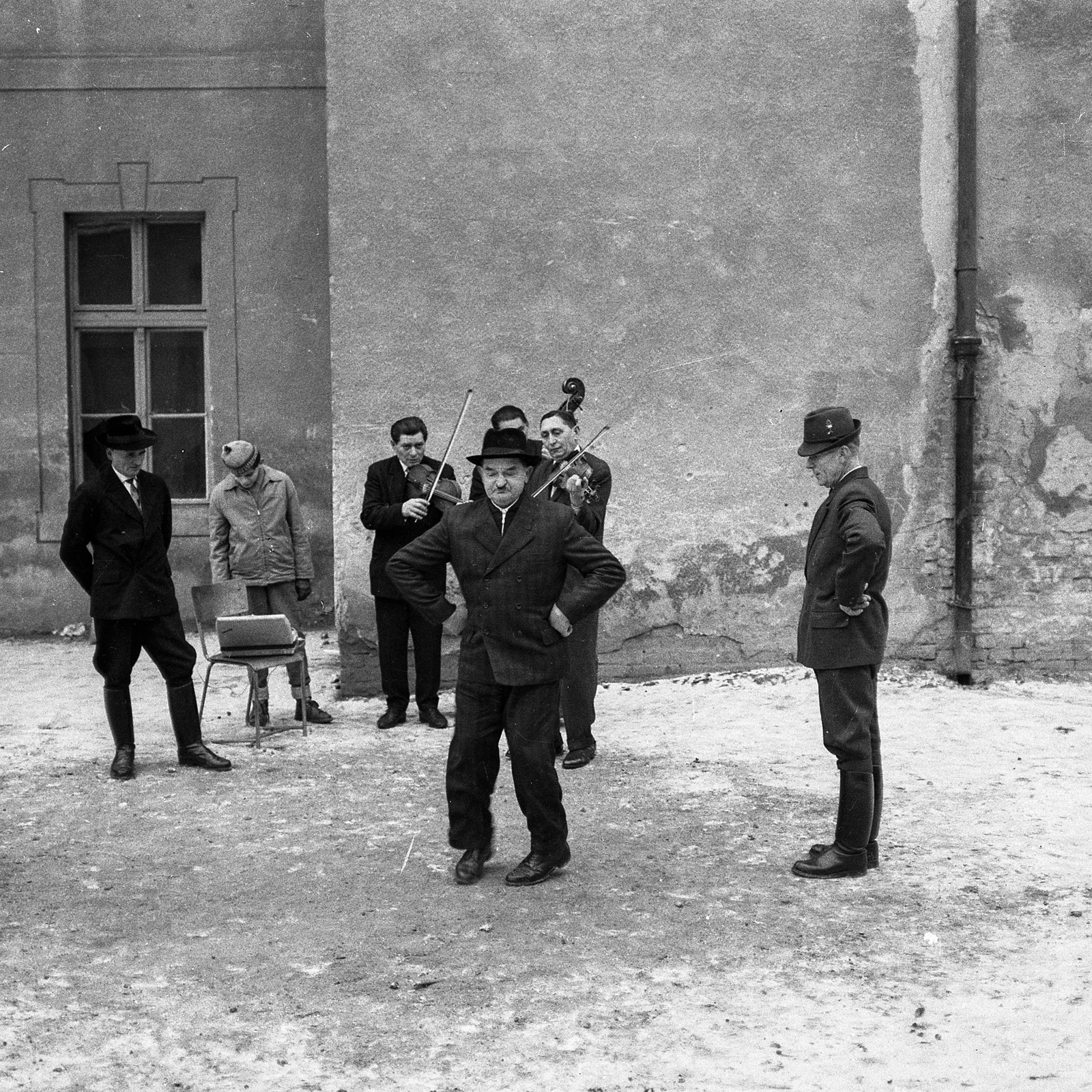 Megrendezett filmfelvétel a Csemadok által rendezett néptáncgyűjtő tanfolyam hallgatói részére. (szóló verbunk, Előadók: Balogh Gyula, Borbély István “Pistyúr”, Borbély István “Slokota”. A helyi cigányzenekar tagjai: Cirók Aladár – prímás, Lakatos József – nagybőgő, Farkas István – kontra. A hangfelvevőnél Éri Péter)