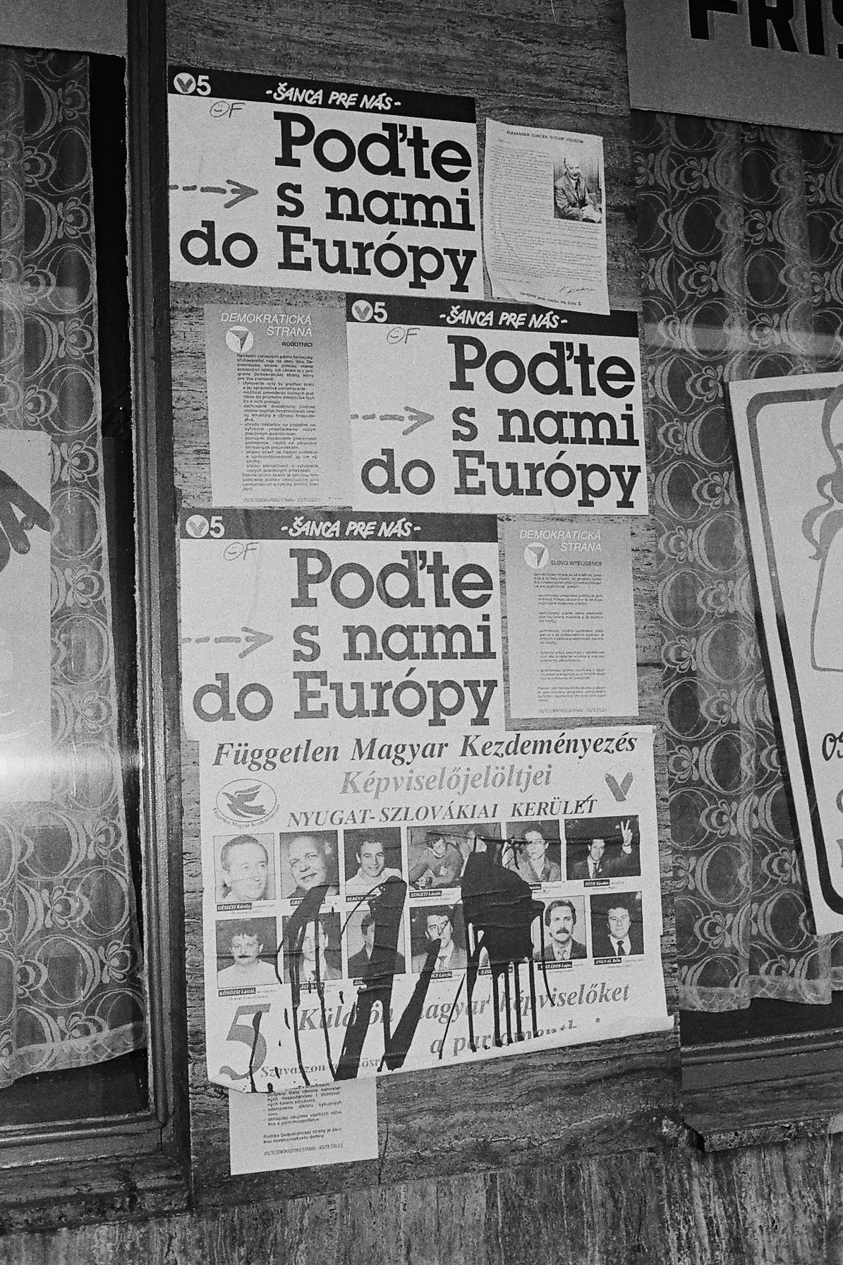 Megrongált magyar plakátok Érsekújvárban a Parlamenti választások idején.