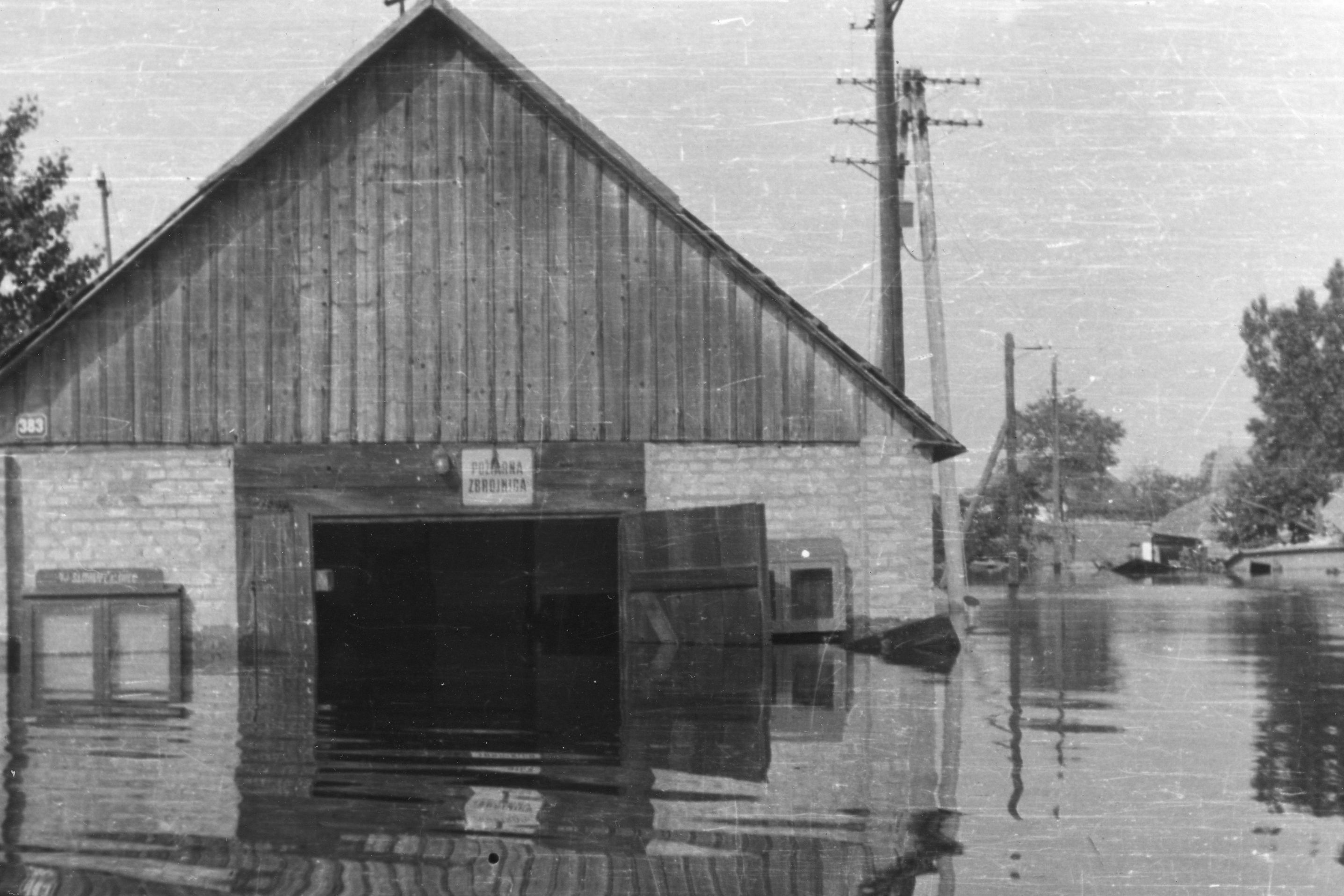 Megyercsi tűzoltószertár víz alatt.