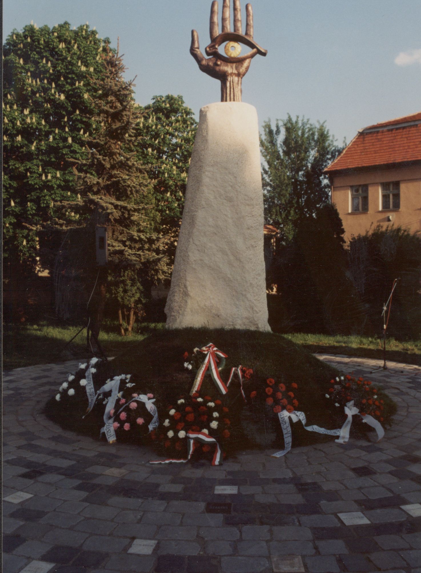 Mérföldkövek, konferencia. A Kitelepítettek és meghurcoltak emlékművének megkoszorúzása (a szobrot 1996 szeptemberében avattás, készítője: Lebo Ferenc)