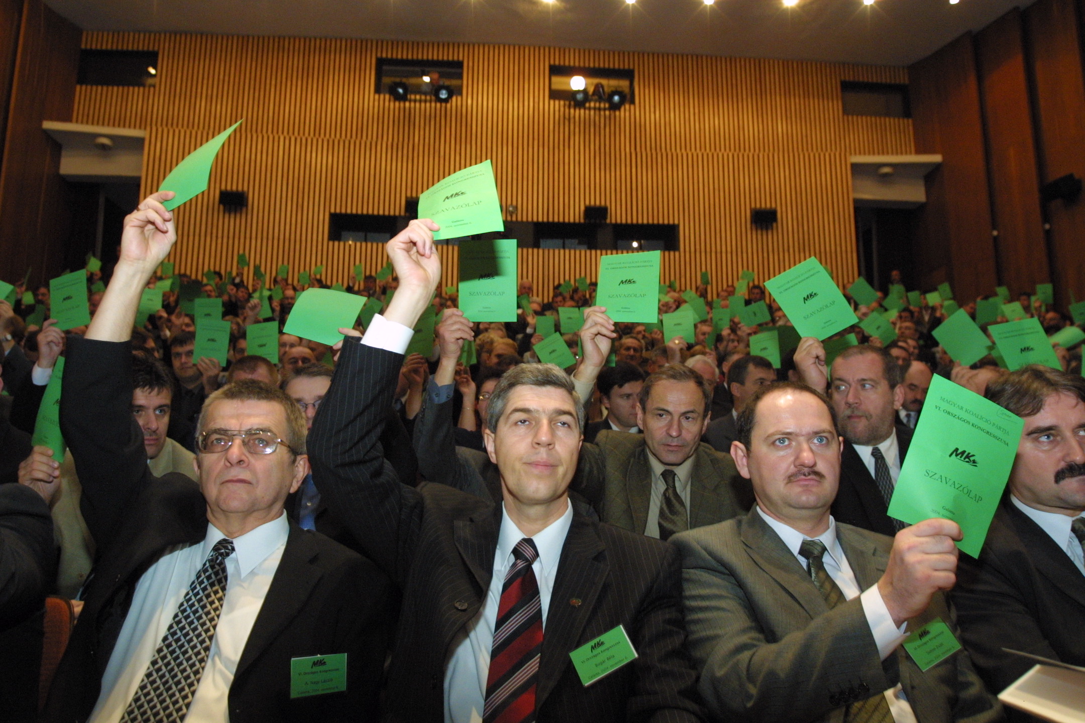 MKP-kongresszus, a képen A. Nagy László, Bugár Béla és Simon Zsolt.