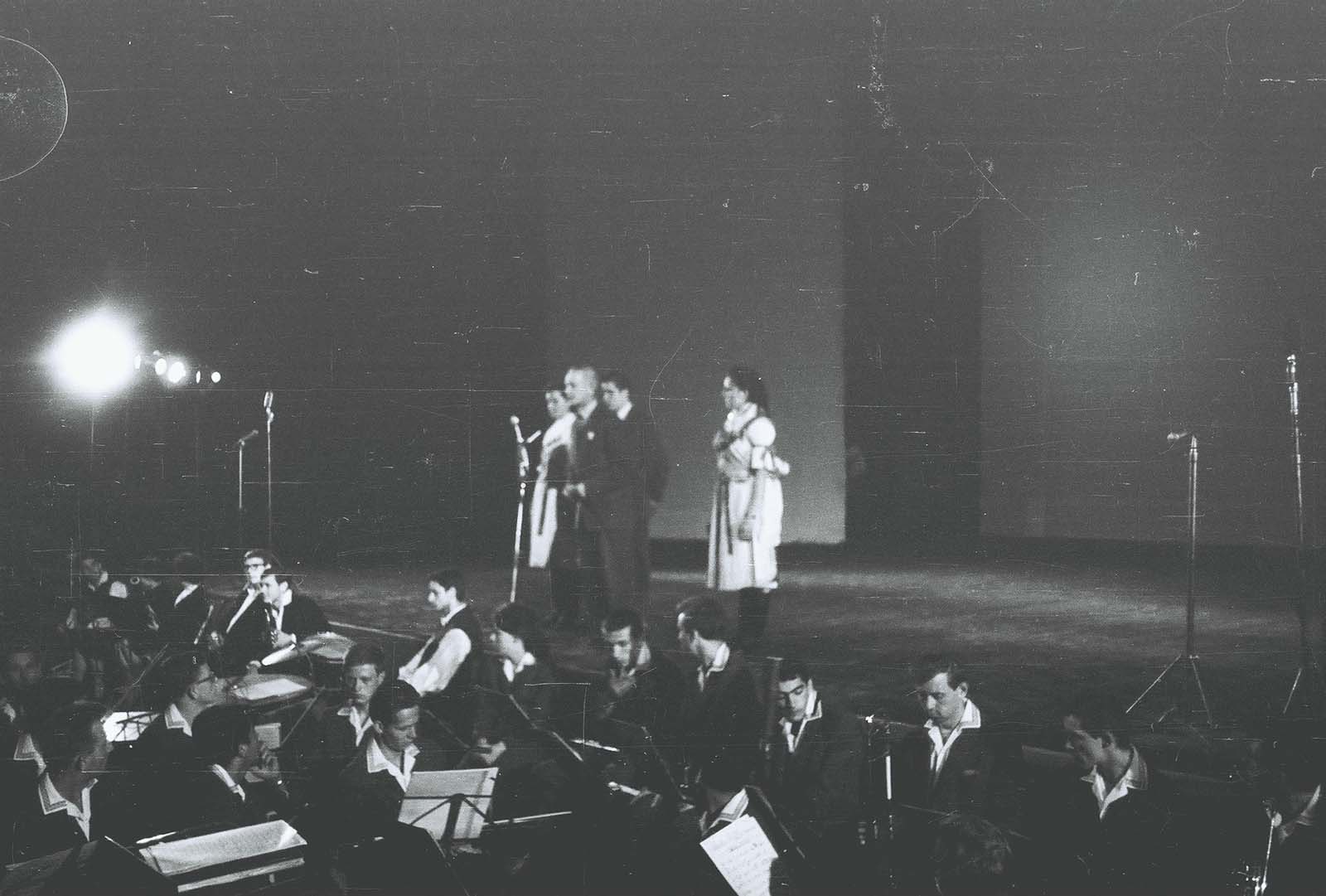 Műsornyitás. (a zenekari árokban az Ifjú Szivek MDTE zenekara) (VII. Országos Dal- és Táncünnnepély)