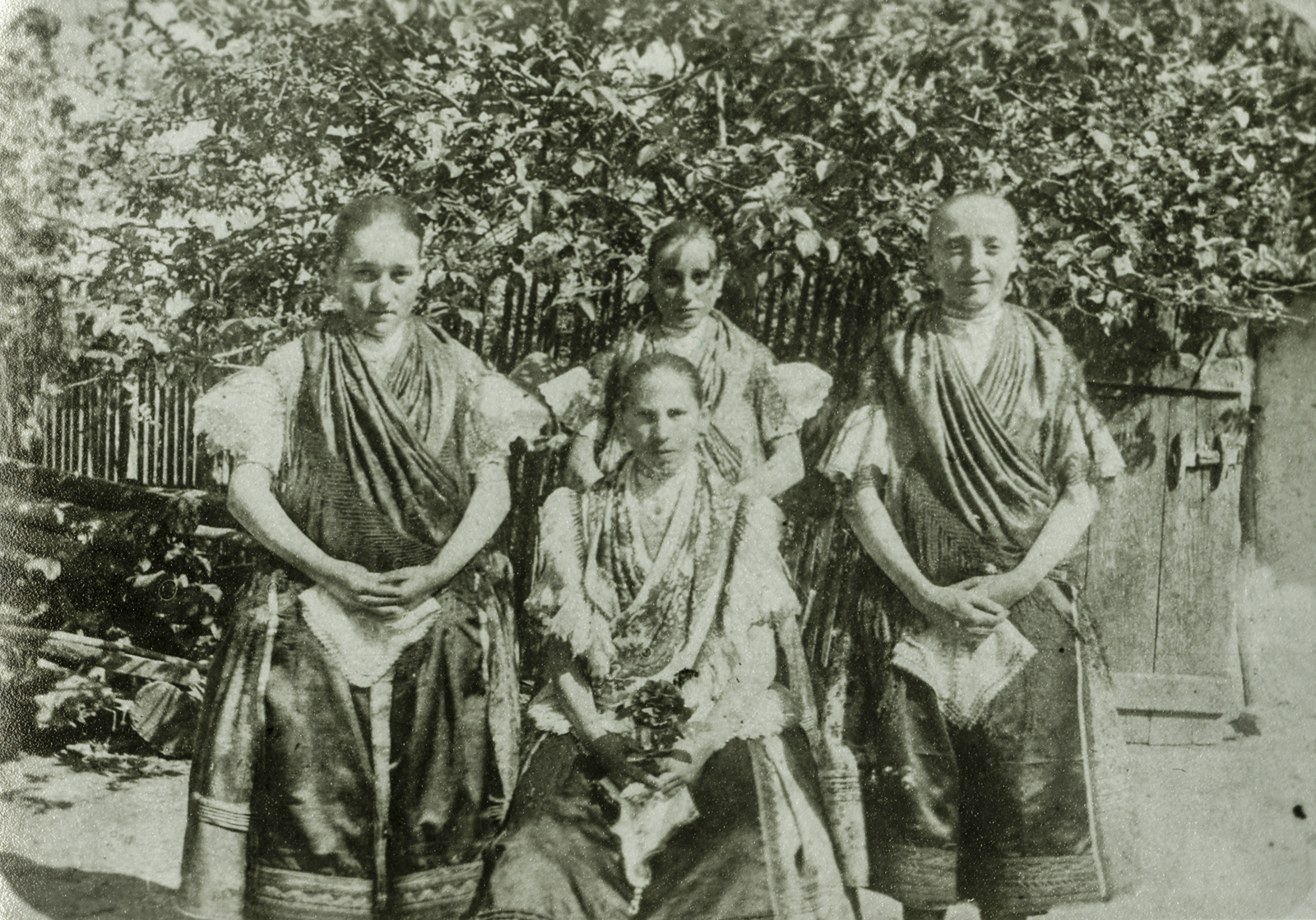 Népviseletes lányok csoportképe.
