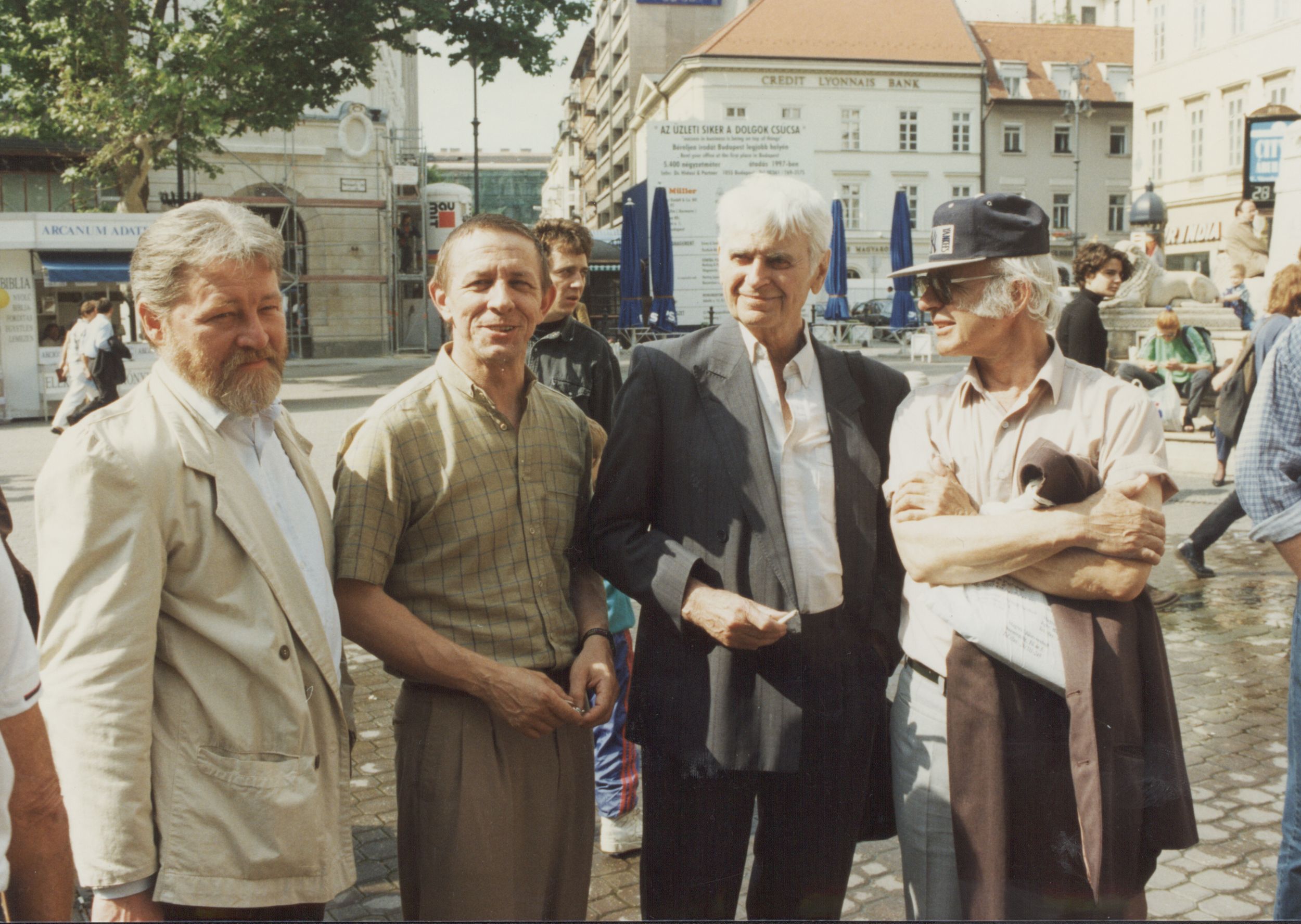 Ozsvald Árpád a könyvhéten (A képen Szigeti László és Tőzsér Árpád)