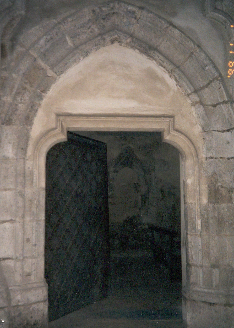 Pelsőc gótikus eredetű 13. századi református templomának bejárata.