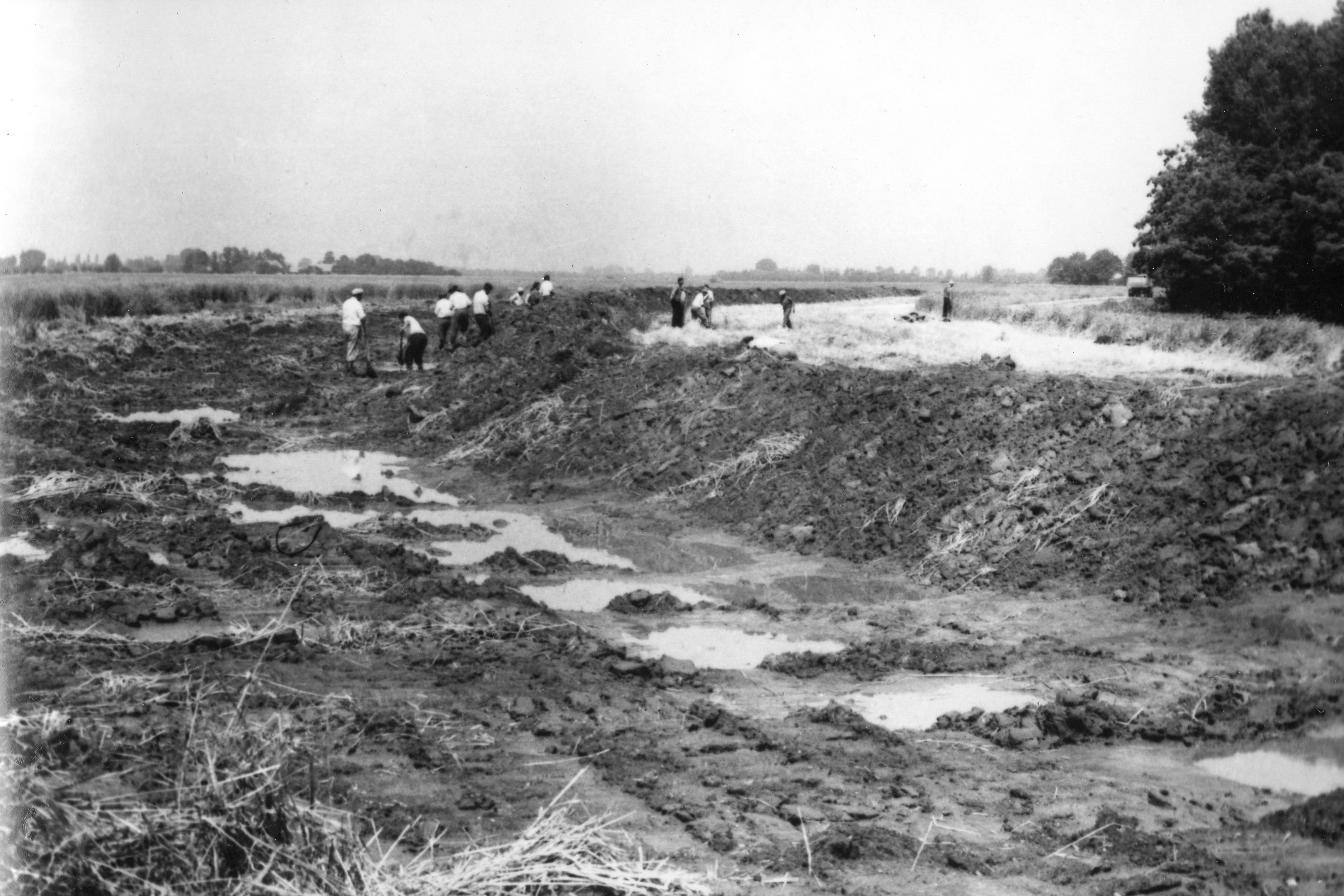 Rögtönzött töltés építése Balonynál.