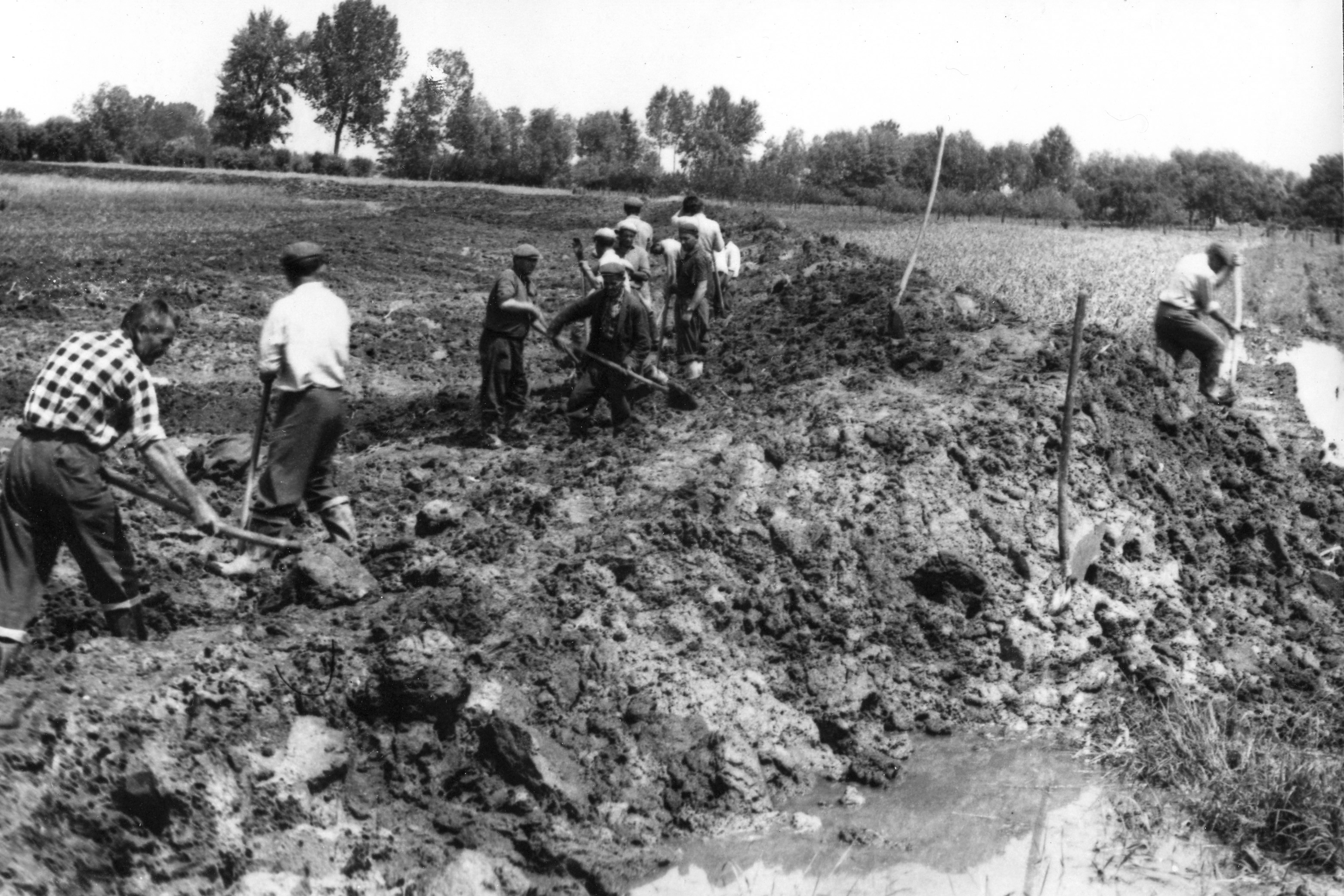 Rögtönzött töltés építése Balonynál.