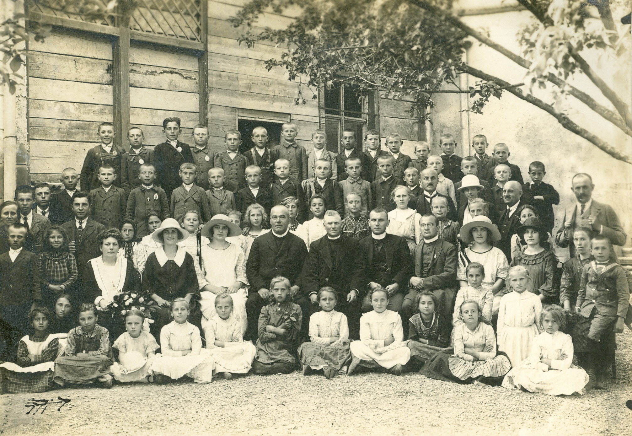 Római Katolikus Elemi Népiskola, Iskolai kirándulás – Selmecbánya, 1924 Középen Bargár György barsendrédi, balján Tonhaizer Mihály nagysallói plébánosok