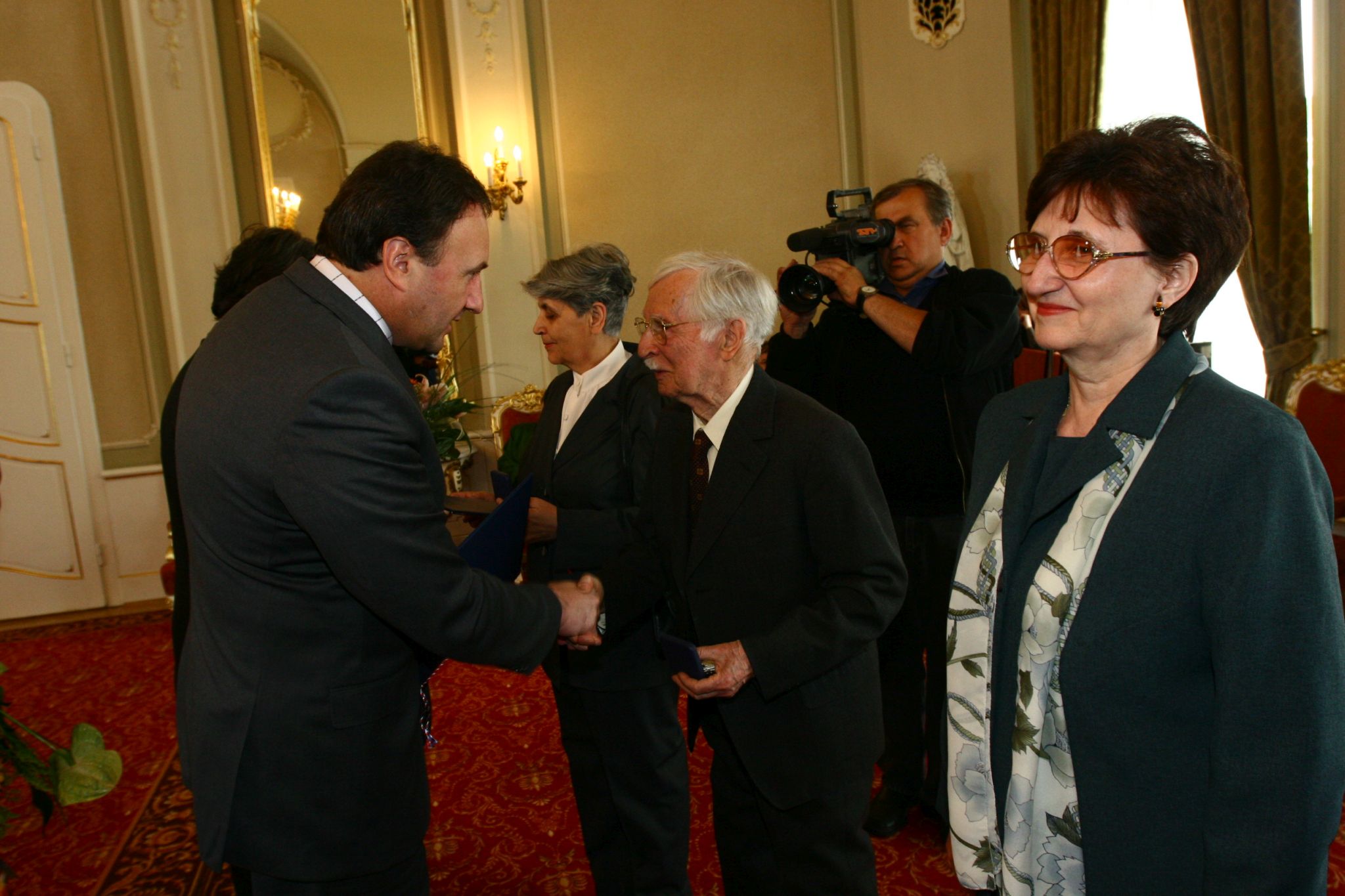 Szlovák Köztársaság Emlékplakettjának átadása. A képen Csáky Pál és Hadsák Vilmos.
