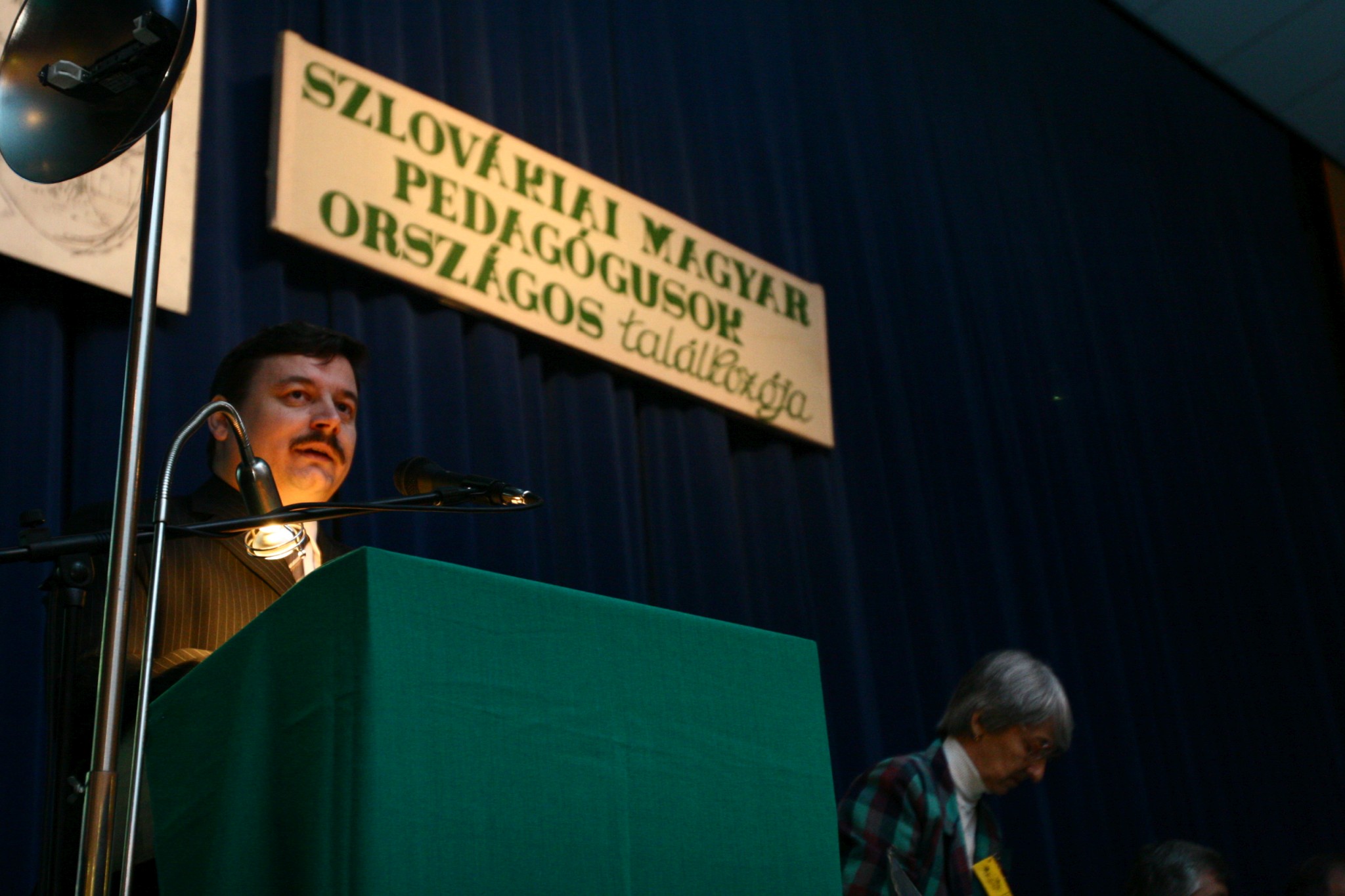 A Szlovákiai Magyar Pedagógusok Szövetsége konferenciája. A képen Berényi József.