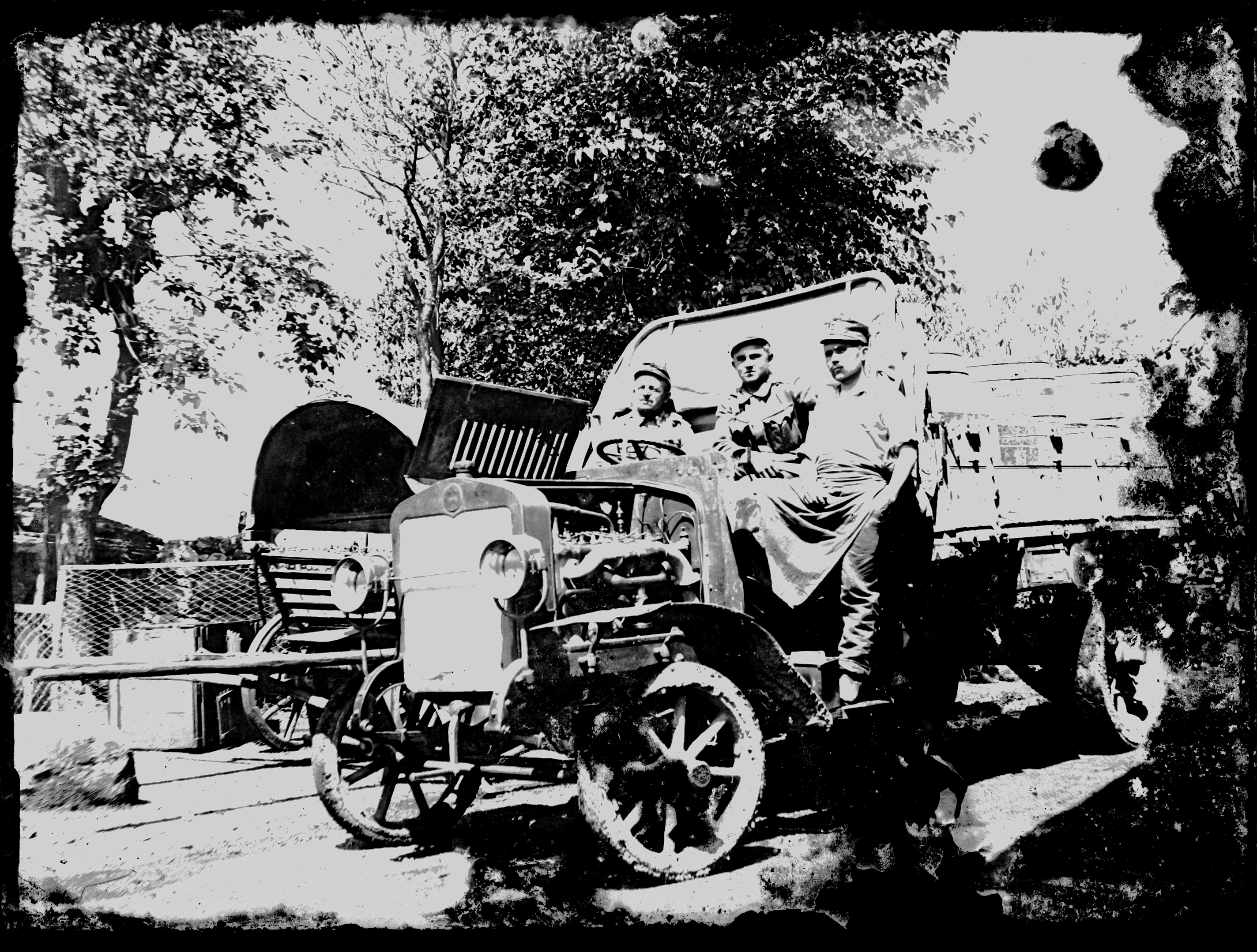 Teherautó és kiszolgáló személyzete.