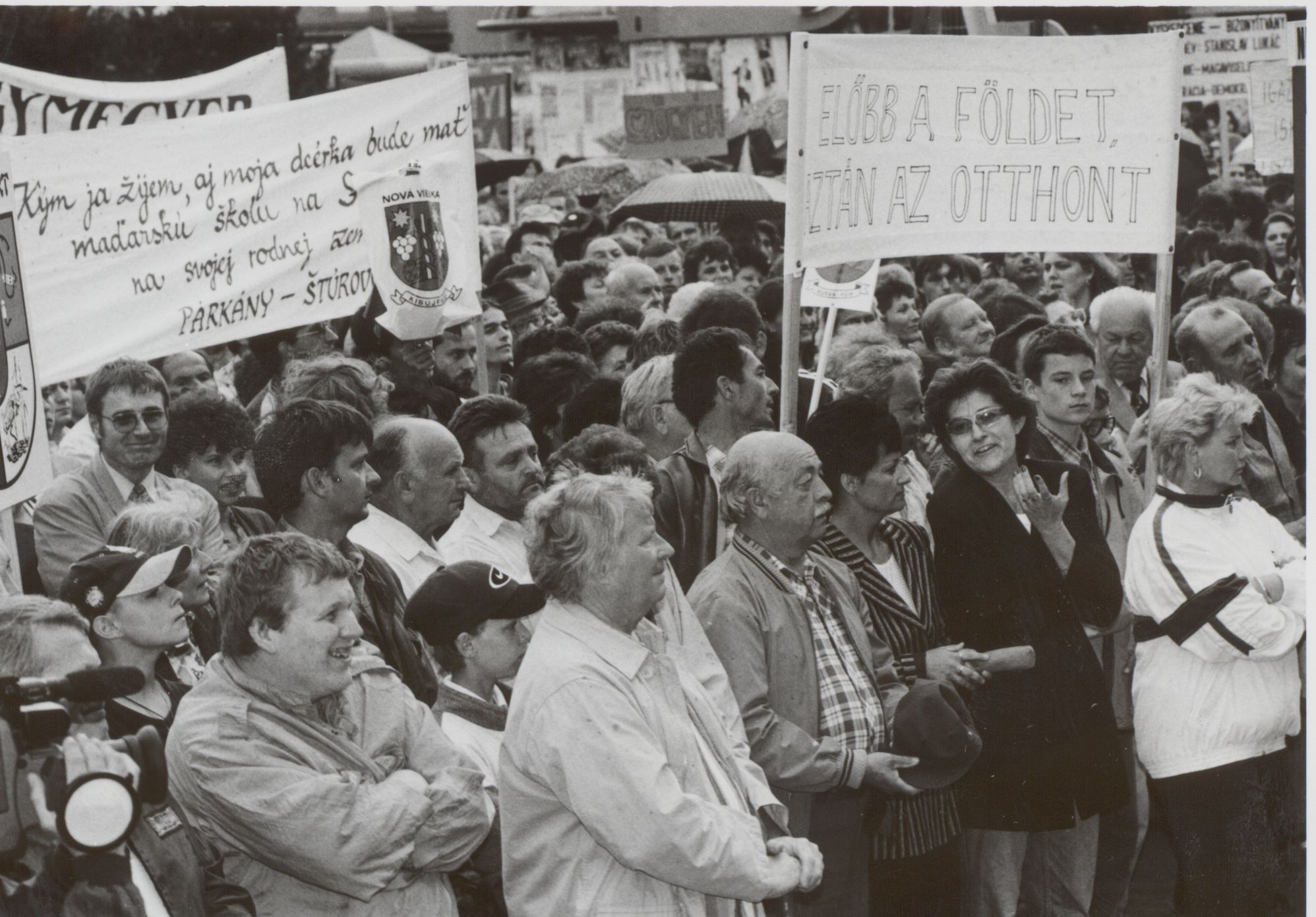 Tiltakozó nagygyűlés a magyar nyelvű oktatás leépítésének szándéka ellen.