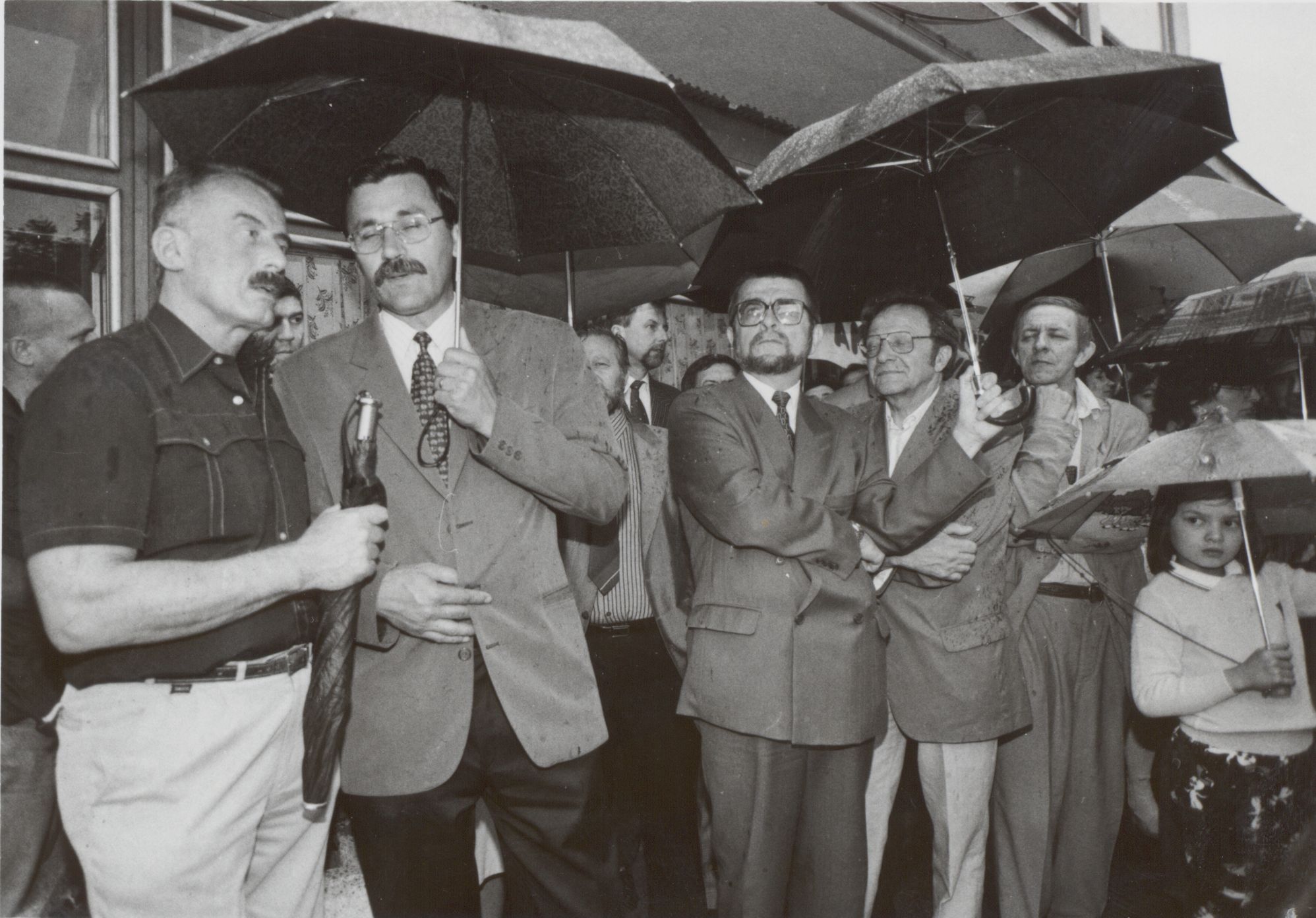 Tiltakozó nagygyűlés a magyar nyelvű oktatás leépítésének szándéka ellen. A képen: Duka Zólyomi Árpád, Farkas Pál, A. Nagy László, ism., Szigeti László