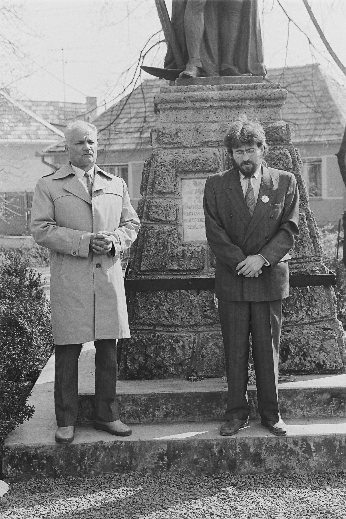 Tompa Mihály megemlékezés a sajógömöri Hunyadi Mátyás szobornál. (A képen: Tóth Károly.)