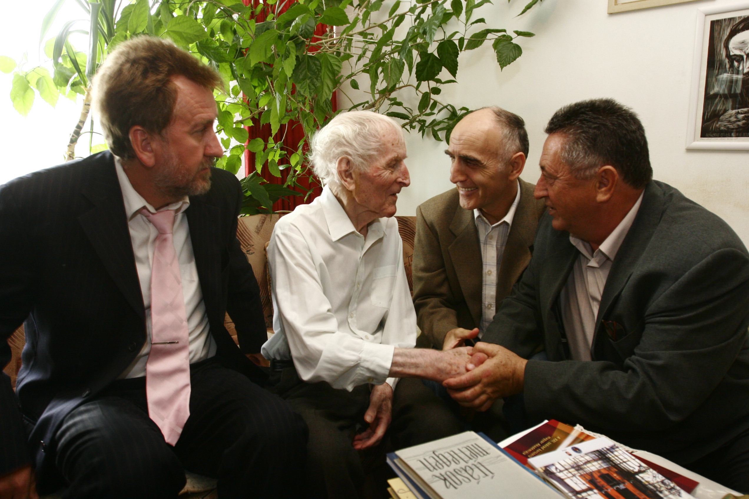 Turczel Lajos köszöntése 90. születésnapja alkalmából. A képen Hodossy Gyula, Turczel Lajos, Fazekas József és Végh László.