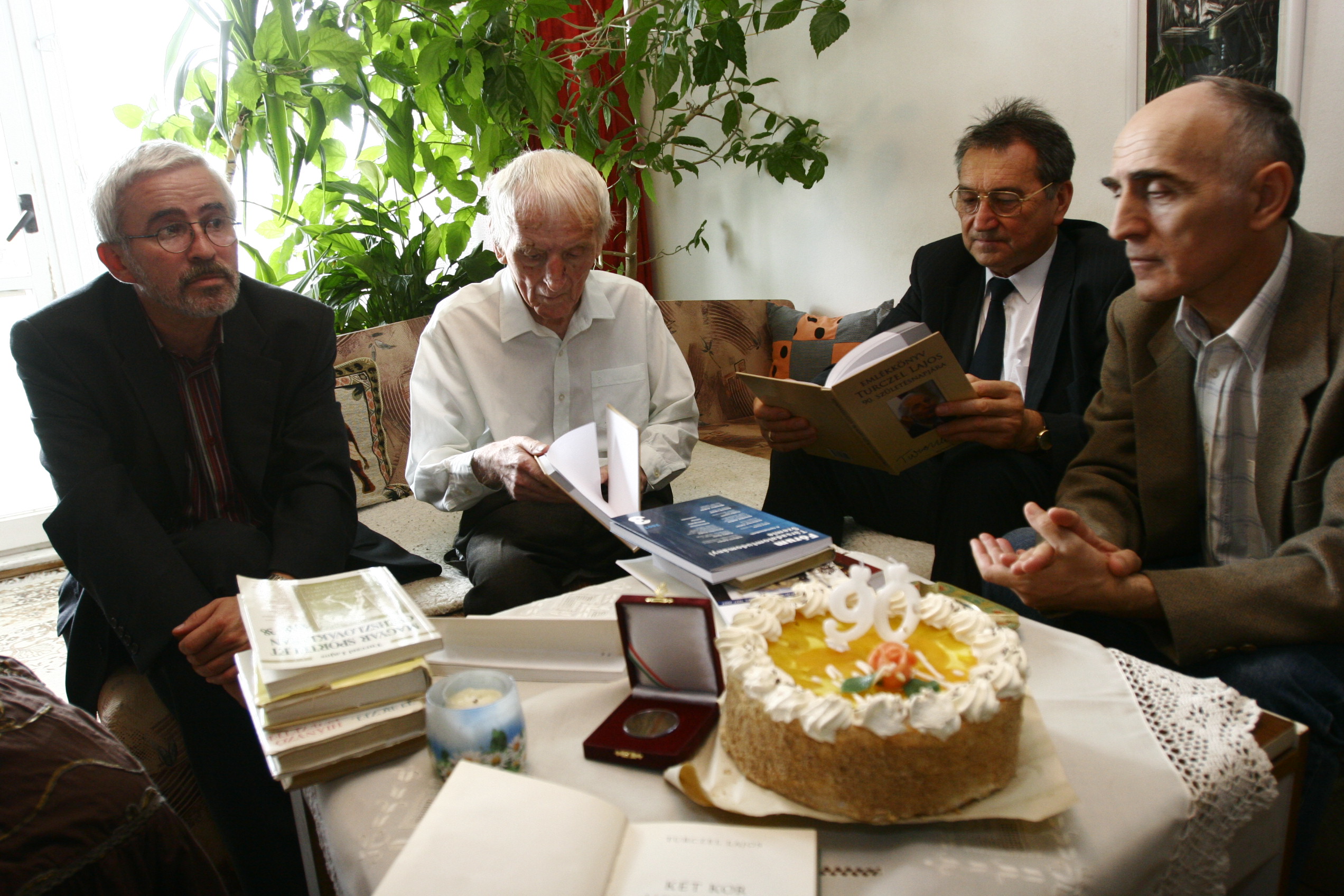 Turczel Lajos köszöntése 90. születésnapja alkalmából. A képen Tóth Károly,Turczel Lajos és Fazekas József.