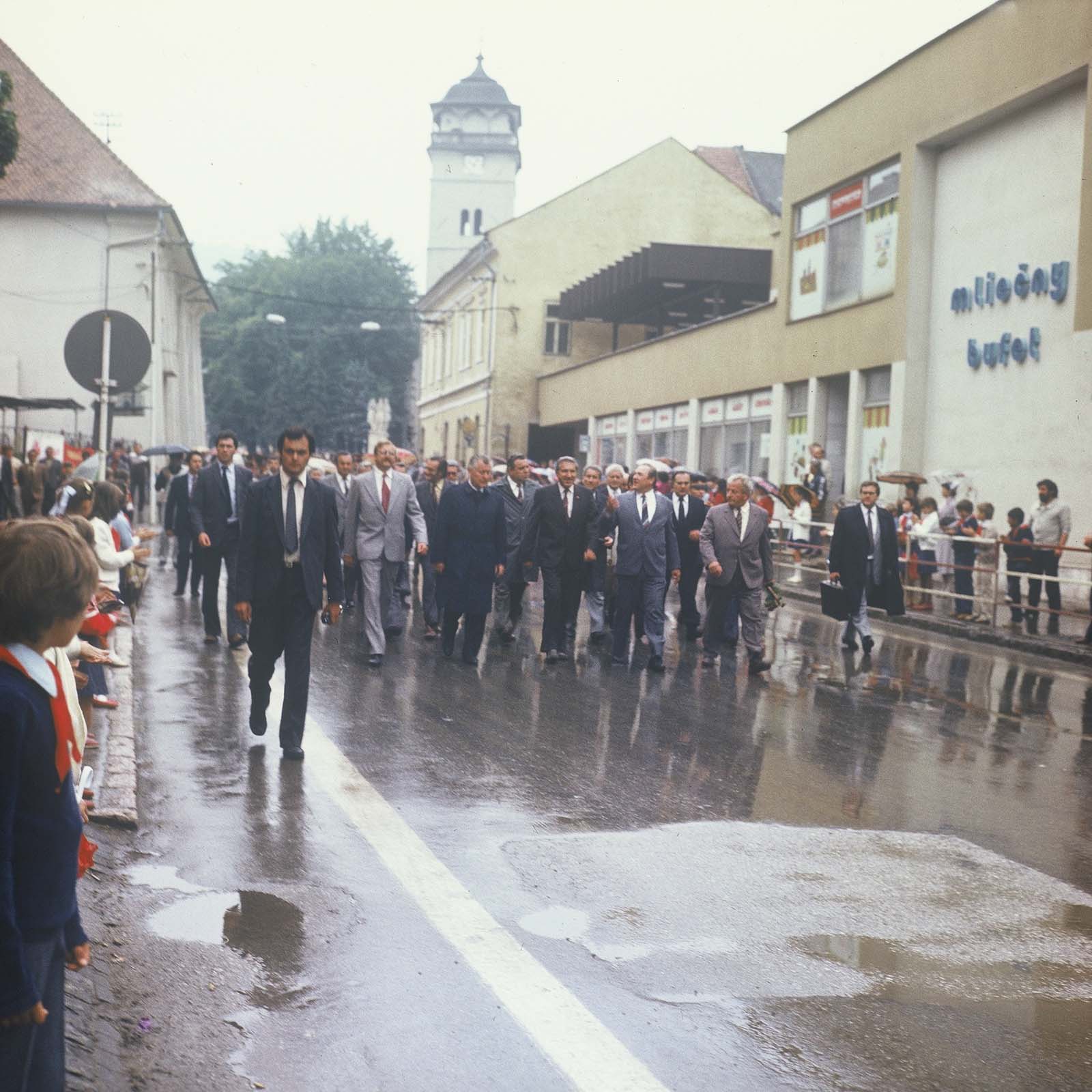 Ünnepi felvonulás. (a képen balról 2. Sidó Zoltán Csemadok KB elnöke, 3. Jozef Colotka a SzK Kormányának elnöke) (XXX. Országos Kulturális Ünnepély)