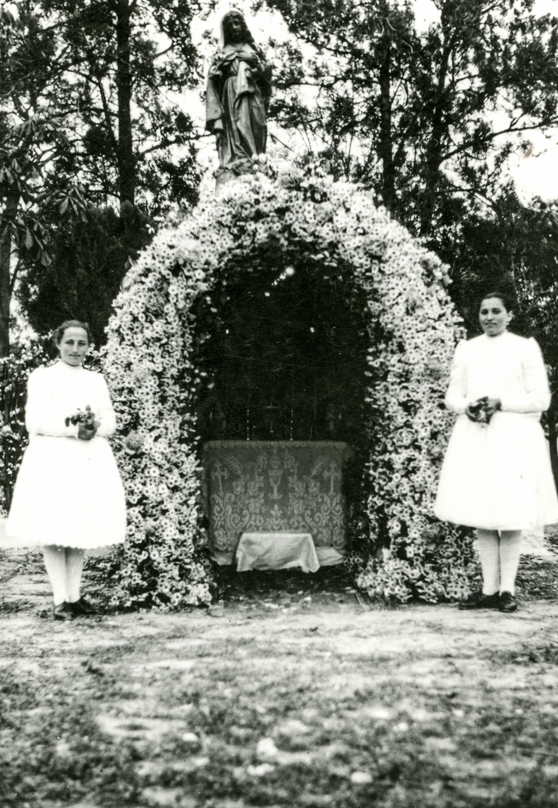 Úrnapi körmenet a Mária képe szobornál 1958-ban (virágsátor).