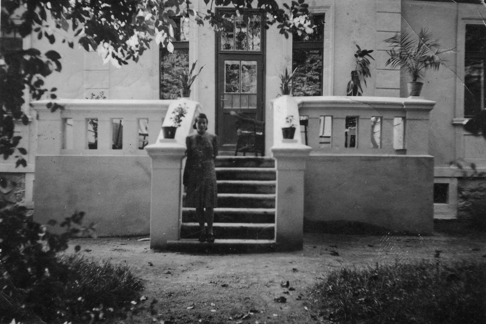 Varga Rezsőné a képen a konzervgyár igazgatói lakása előtt.